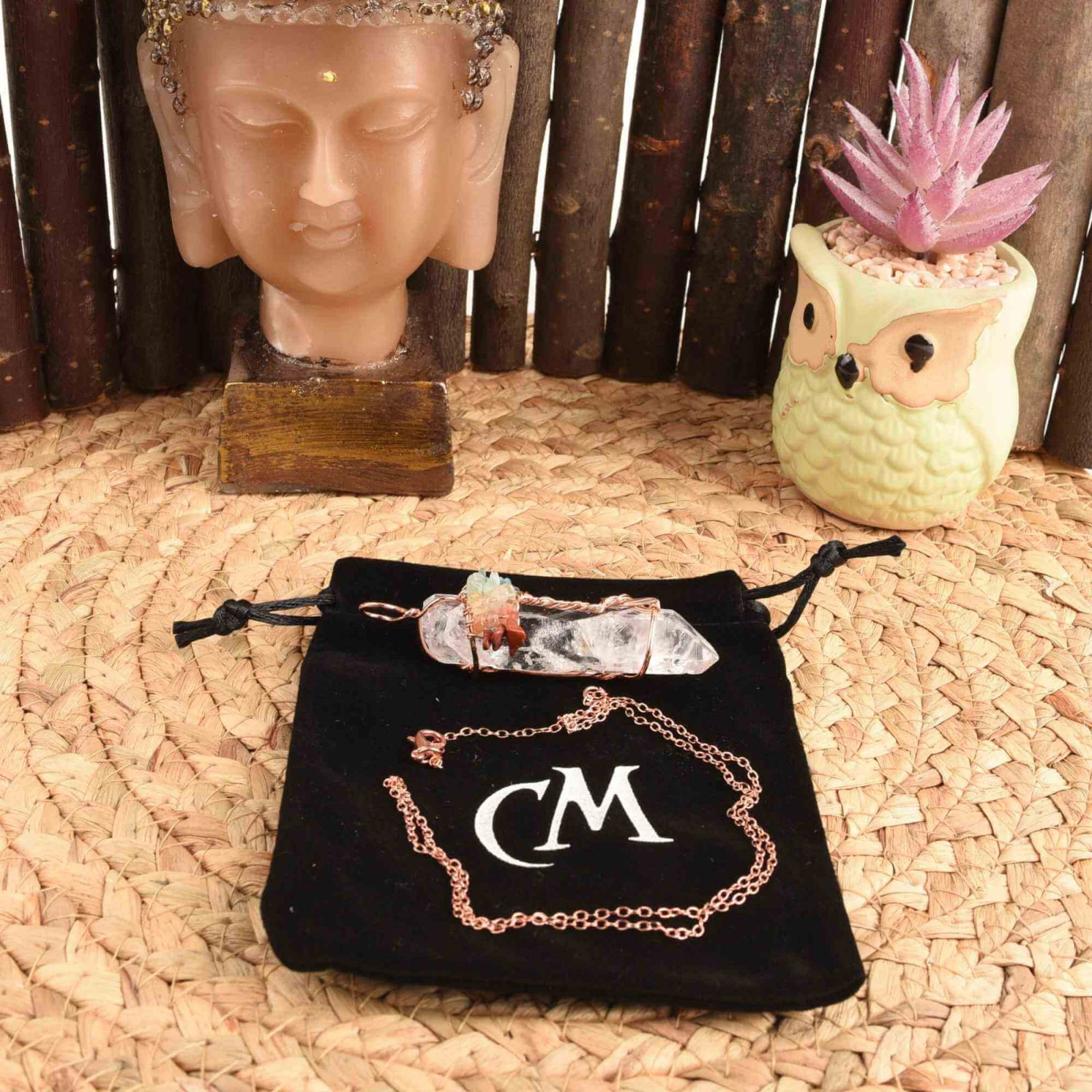 Păstrați bijuteriile în cutie, ferite de umezeală; evitați contactul cu apă, parfumuri, cosmetice sau substanțe chimice. După purtare, ștergeți ușor cu o cârpă moale. Curățarea energetică se poate face prin fumigație (palo santo, salvie, tămâie), cu selenit, sub jet de apă rece sau la lumina lunii.