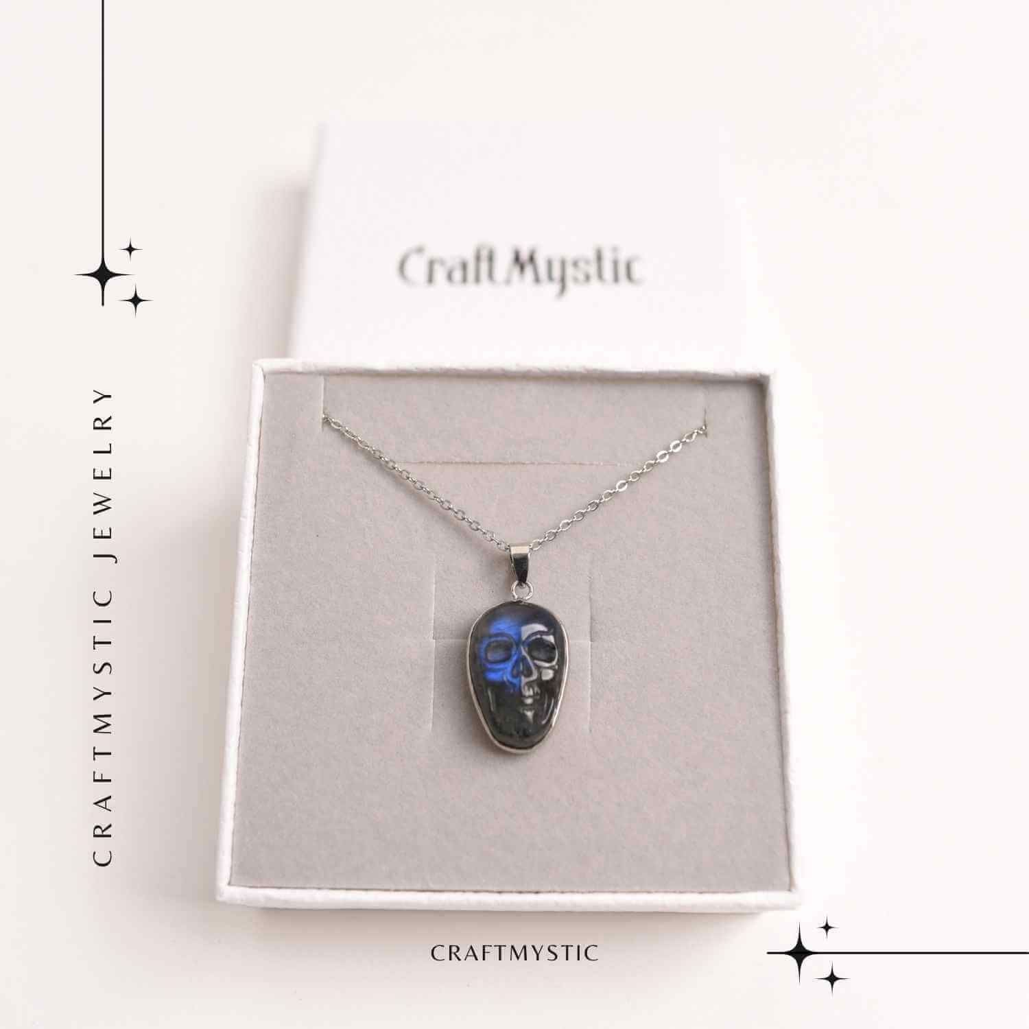 Descoperă eleganța misterioasă și semnificația profundă a colierului ajustabil cu pandantiv craniu din labradorit natural. Acest pandantiv unic este lucrat din labradorit natural, o piatră cu străluciri fascinante care simbolizează protecția și transformarea personală. Este perfect pentru cei care caută să îmbine stilul cu spiritualitatea, fiind un accesoriu deosebit atât pentru tine, cât și pentru cei dragi.