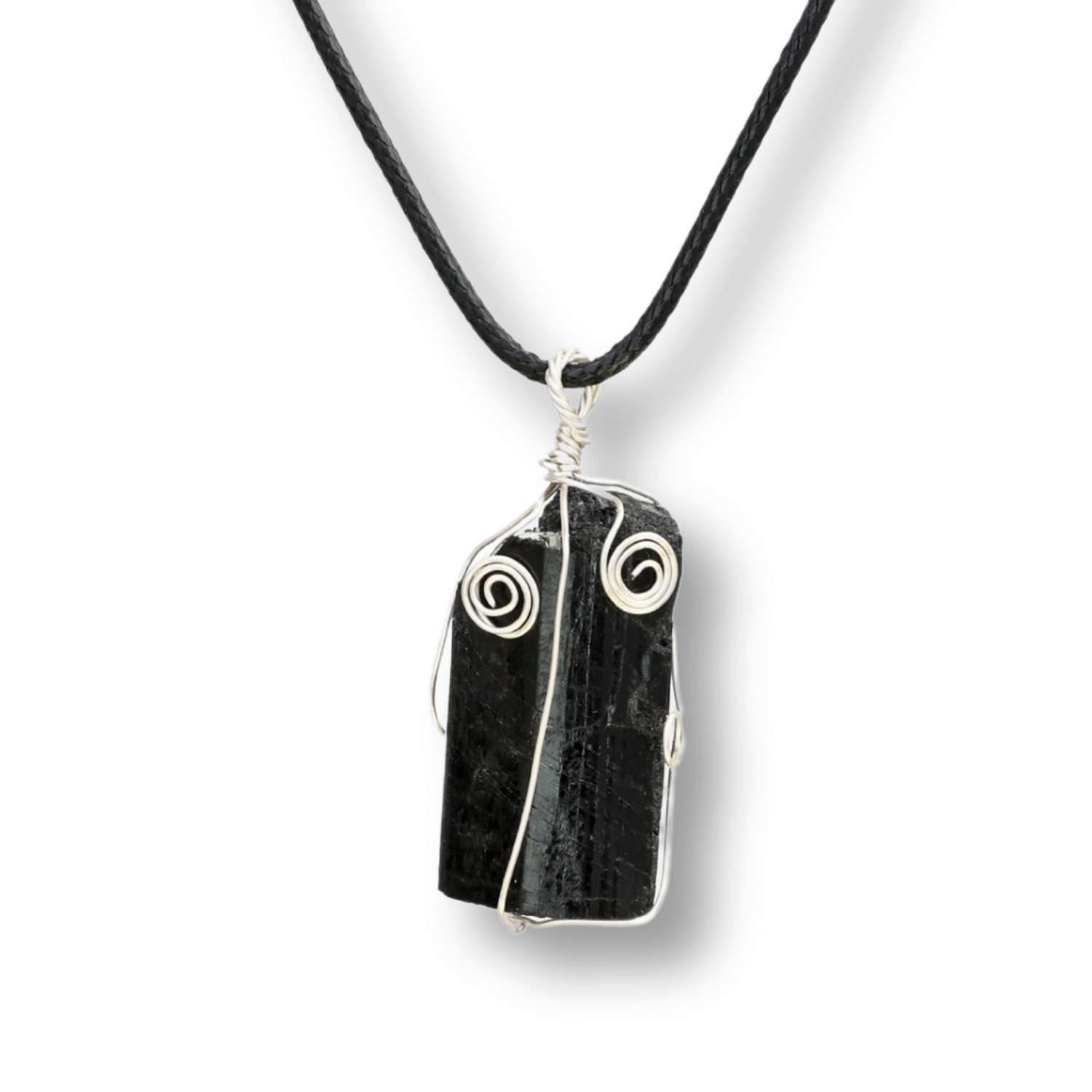 Descriere: Acest colier distinctiv, prevăzut cu un pandantiv de 25 mm din Turmalină Neagră îmbrăcată în sârmă, este alegerea perfectă pentru a adăuga un strop de eleganță și protecție stilului tău zilnic.