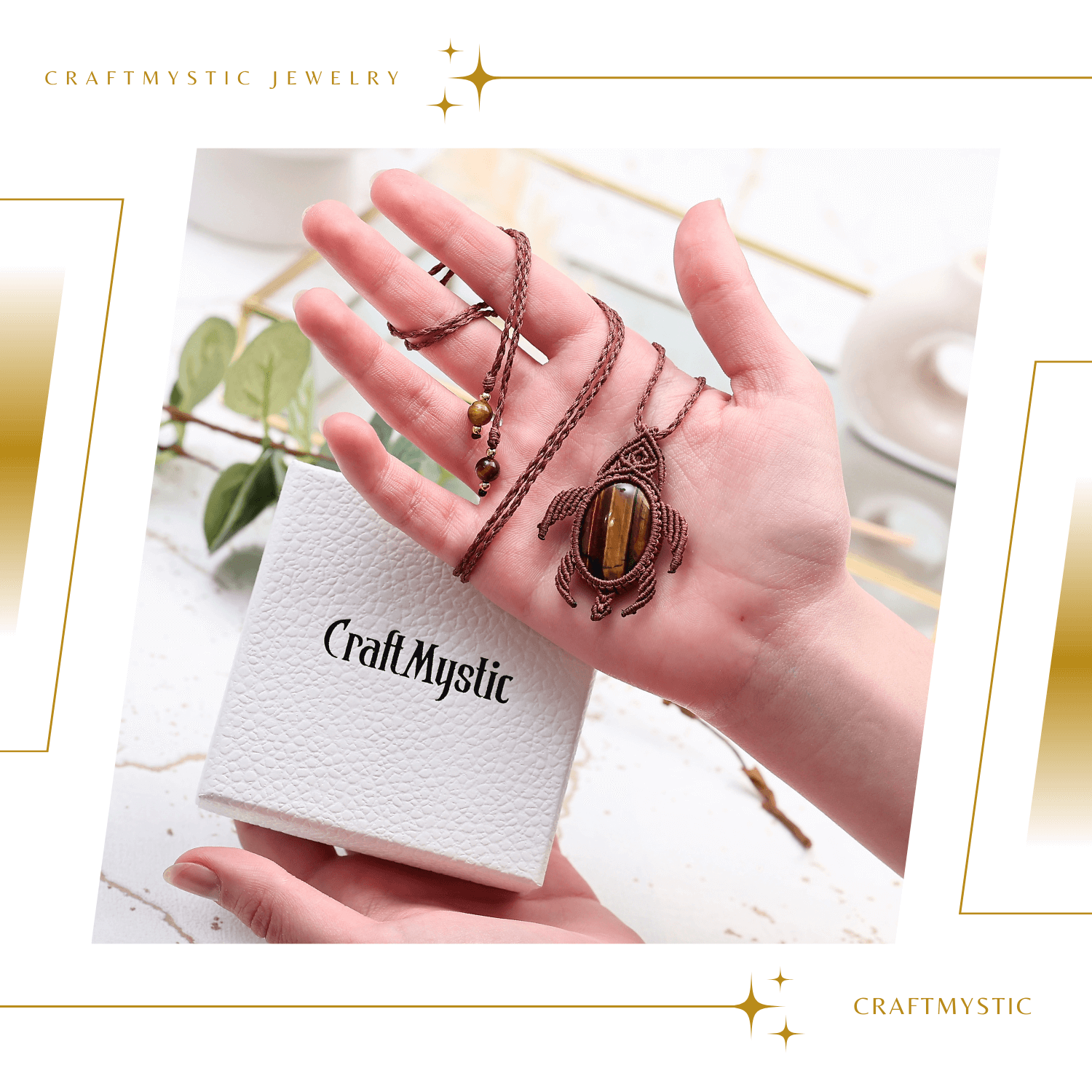 Experimenteaza eleganta si puterea protectora cu acest colier unic, conceput manual cu un cristal de Ochi de Tigru intr-o broscuta impletita. Acest accesoriu nu este doar o piesa de bijuterie, ci un veritabil talisman ce aduce curaj si claritate celui ce il poarta.