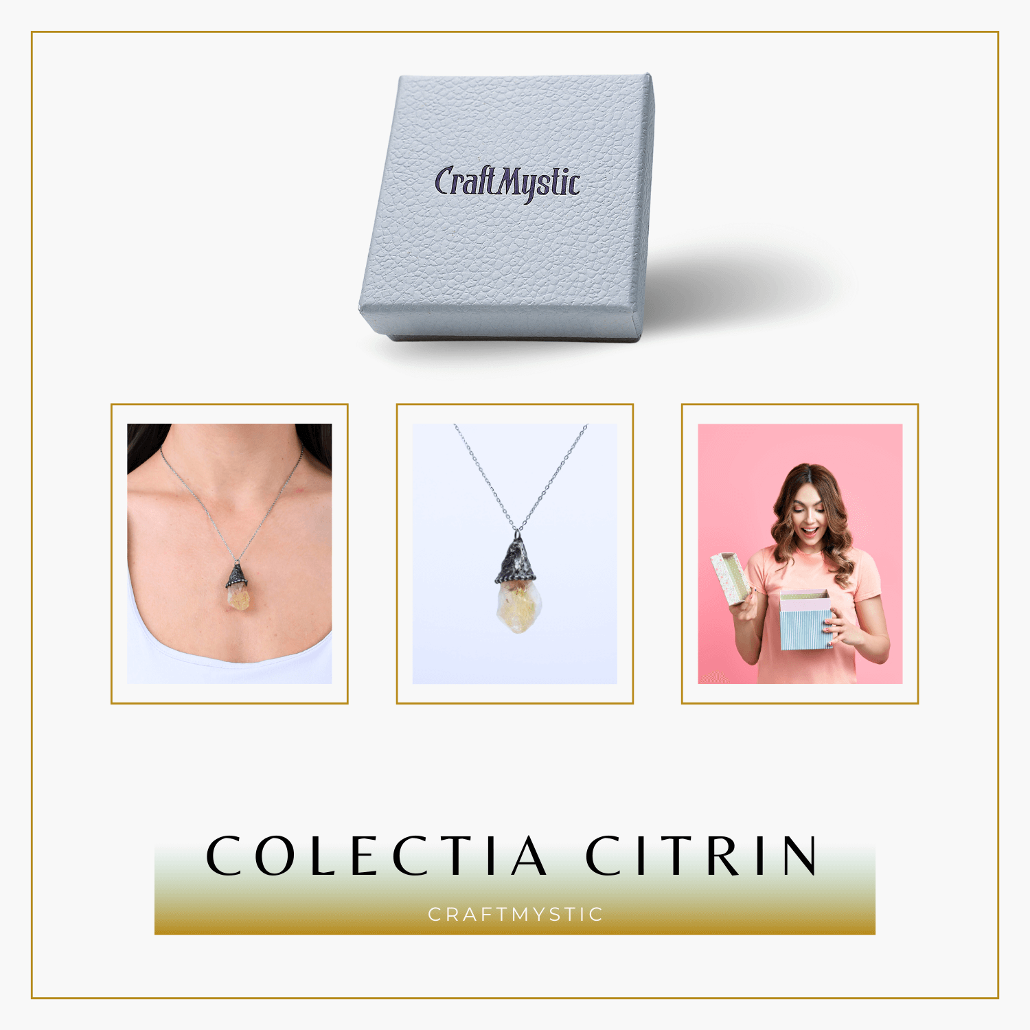 Principalele beneficii ale Colierului cu lanț metalic ajustabil și pandantiv model vintage cu vârf de citrin: