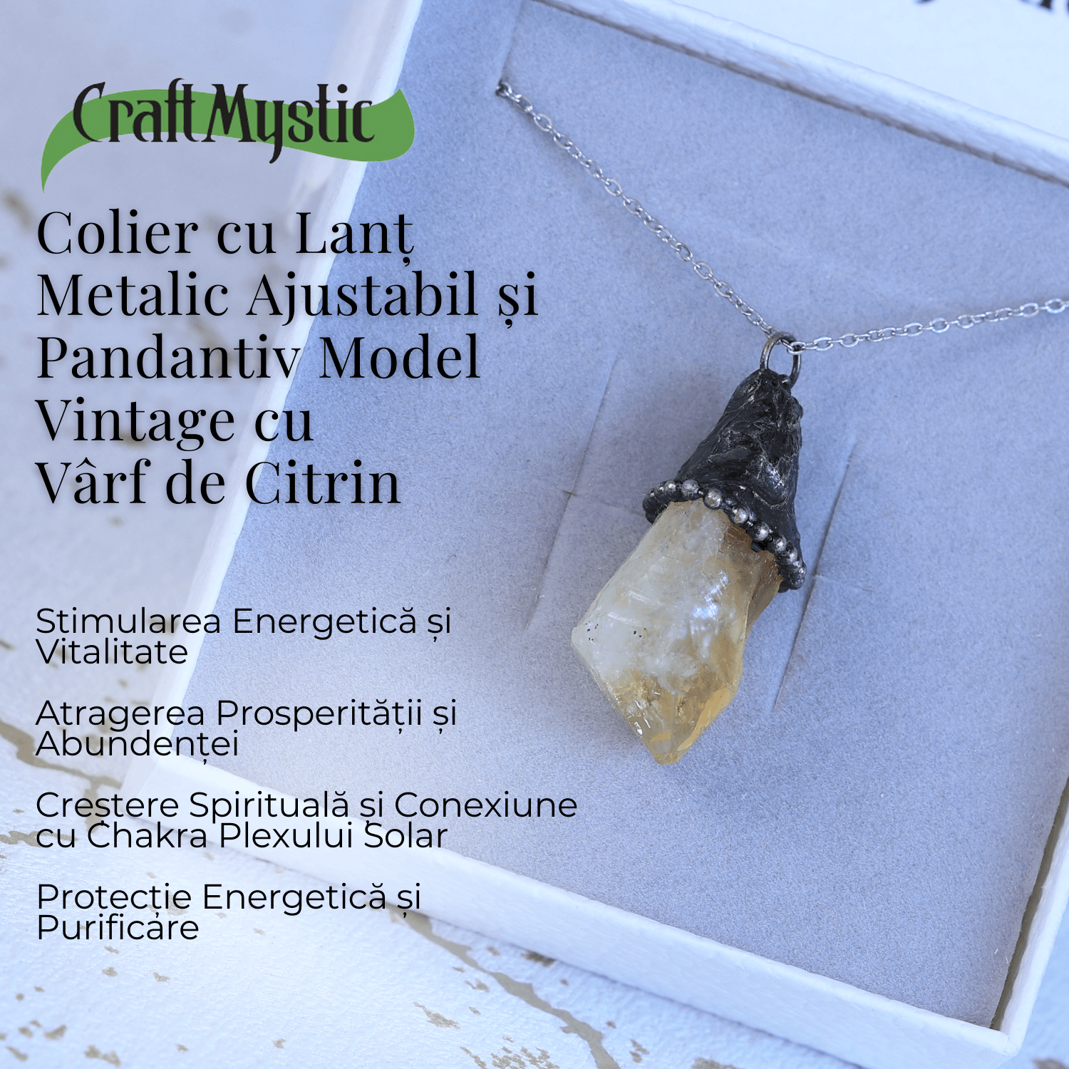 Descoperă secretul energiei și succesului cu acest colier vintage unic cu vârf de citrin!