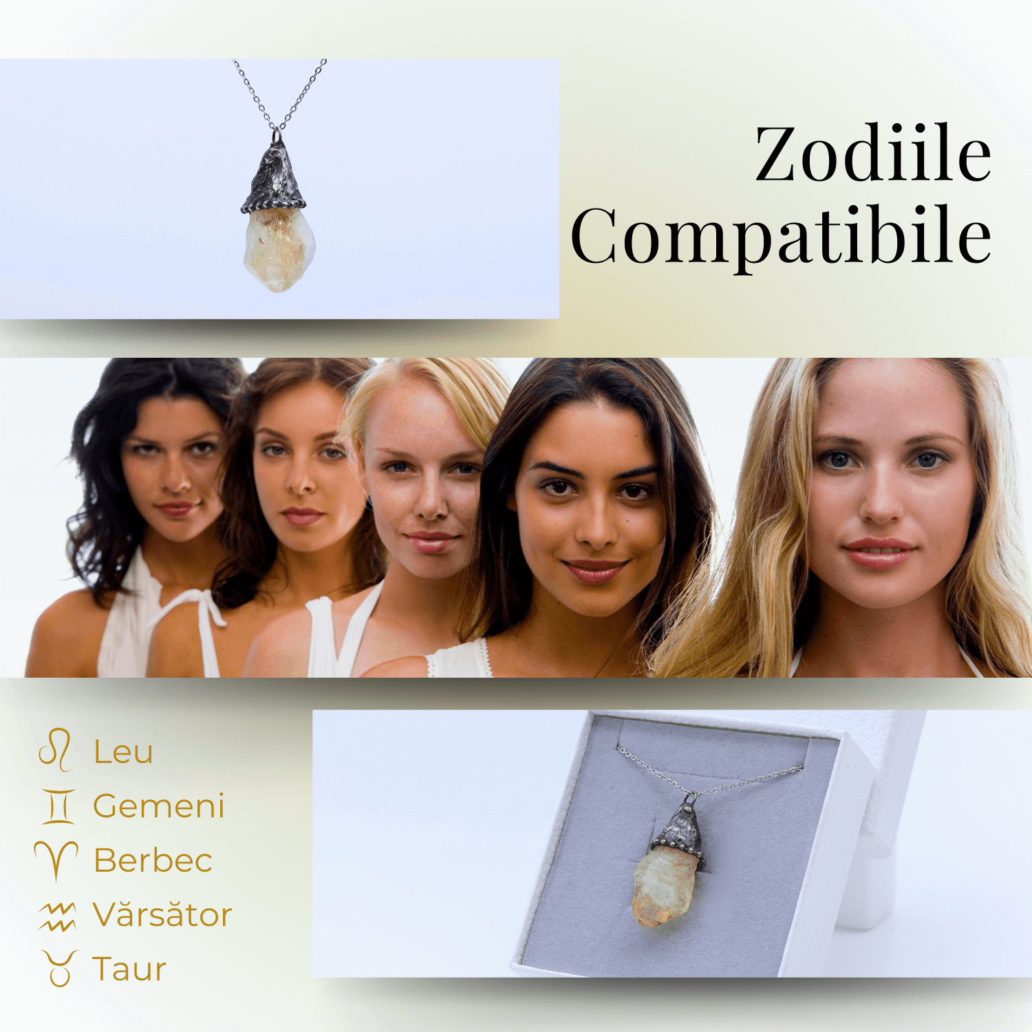 Acest Colier cu lanț metalic ajustabil și pandantiv model vintage cu vârf de citrin este perfect pentru oricine dorește să aducă energie, claritate și succes în viața lor. Este ideal pentru: