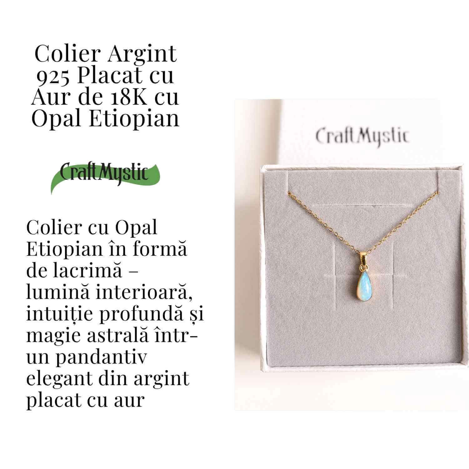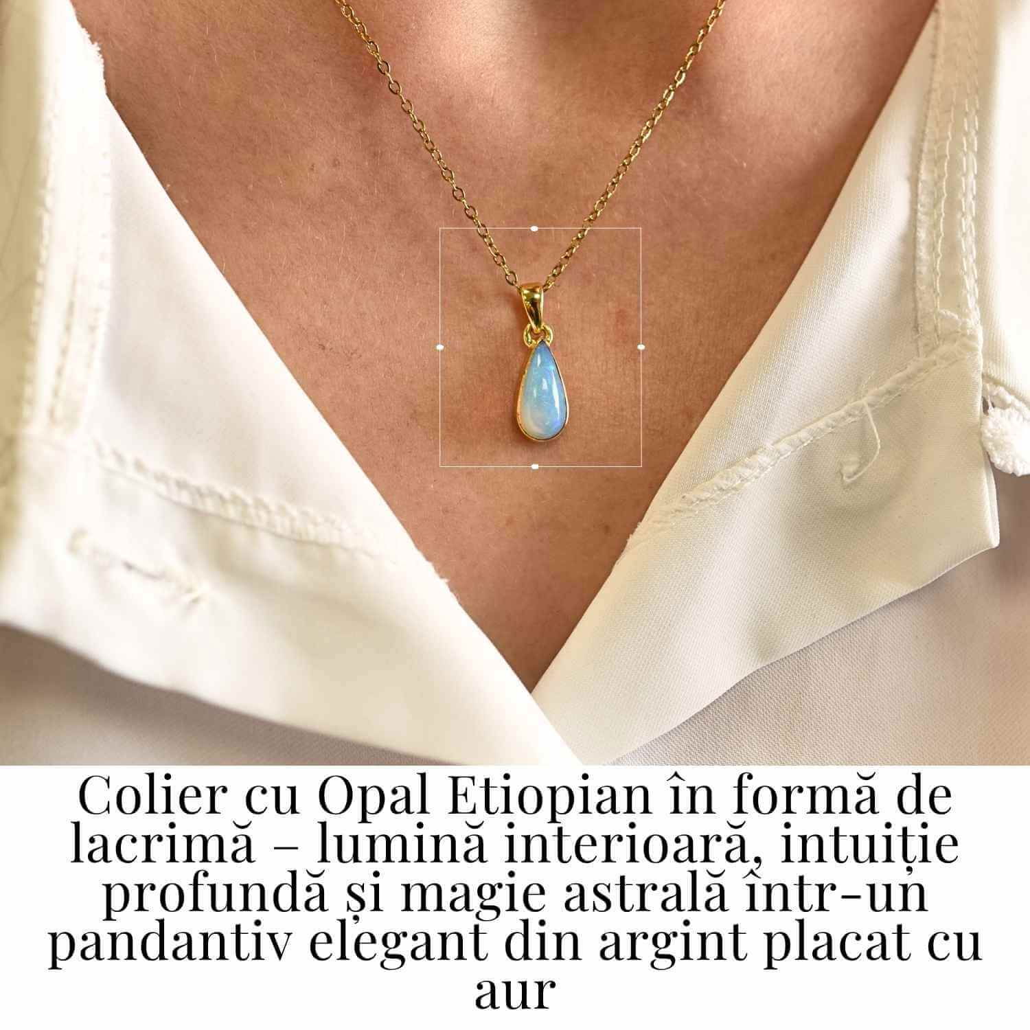 Descoperă claritatea și intuiția absolută cu un colier unic, realizat manual, ce combină eleganța aurului cu magia opalului.