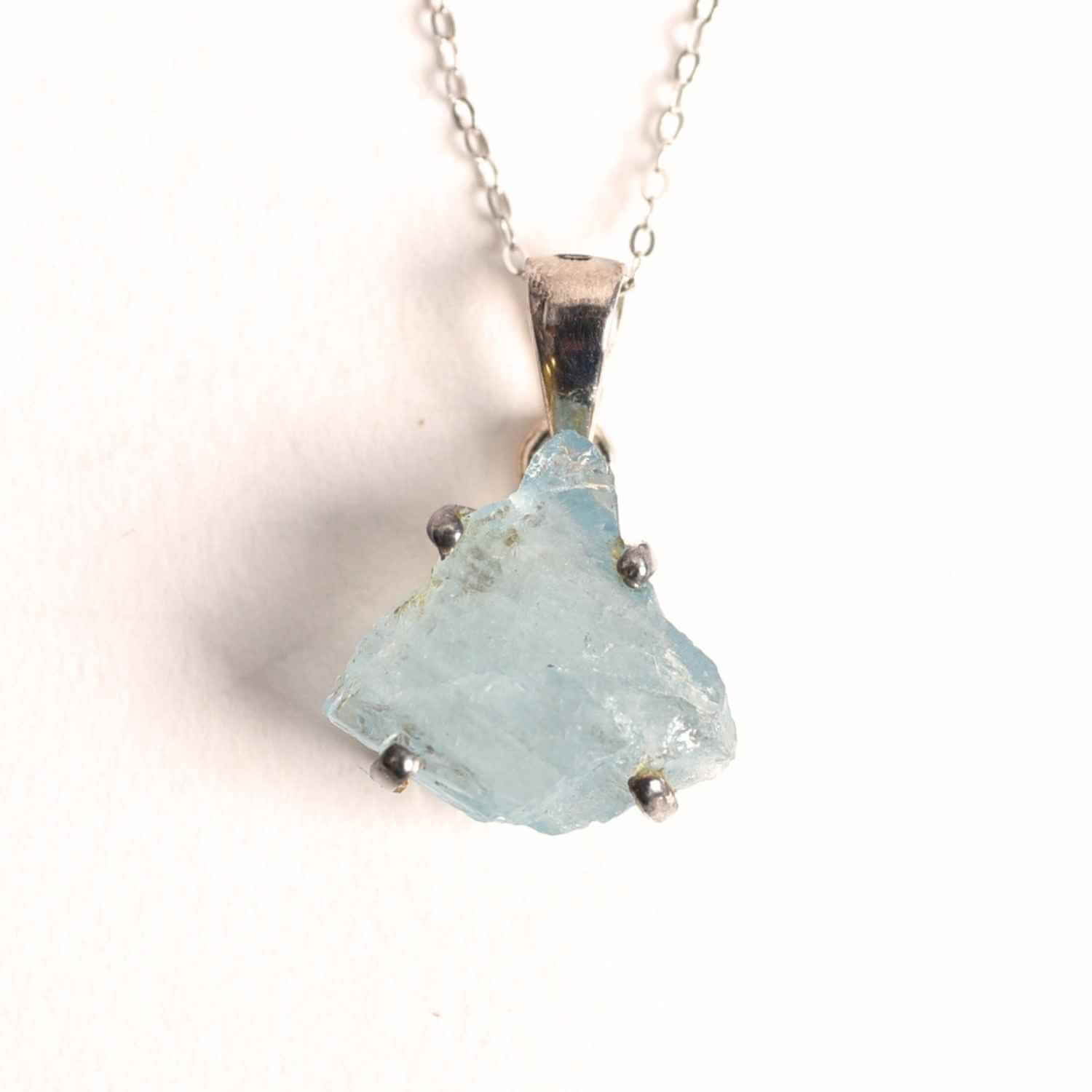 Colier Argint 925 cu Acvamarin Brut 2.95 gr– Liniste Interioara si Claritate