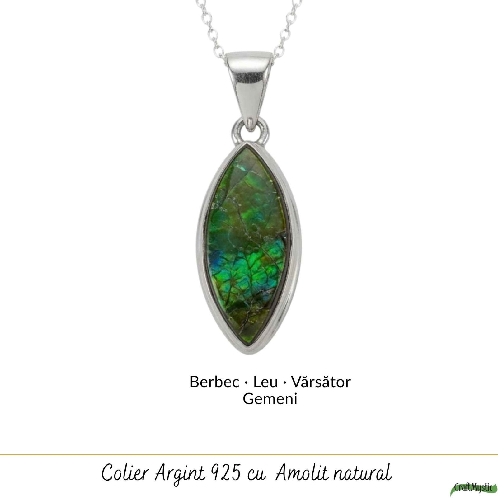 Îți pui colierul dimineața și observi reflexiile fascinante ale amolitului în lumină. Culorile sale irizante atrag subtil privirea și completează elegant orice ținută. Este ușor și plăcut, îl vei uita că îl porți.