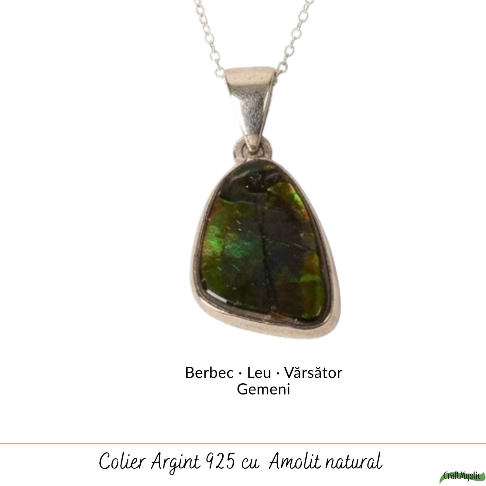 Îți pui colierul dimineața și observi reflexiile fascinante ale amolitului în lumină. Culorile sale irizante atrag discret privirea și oferă bijuteriei un aer special. Este ușor și plăcut pe piele, îl vei uita că îl porți.