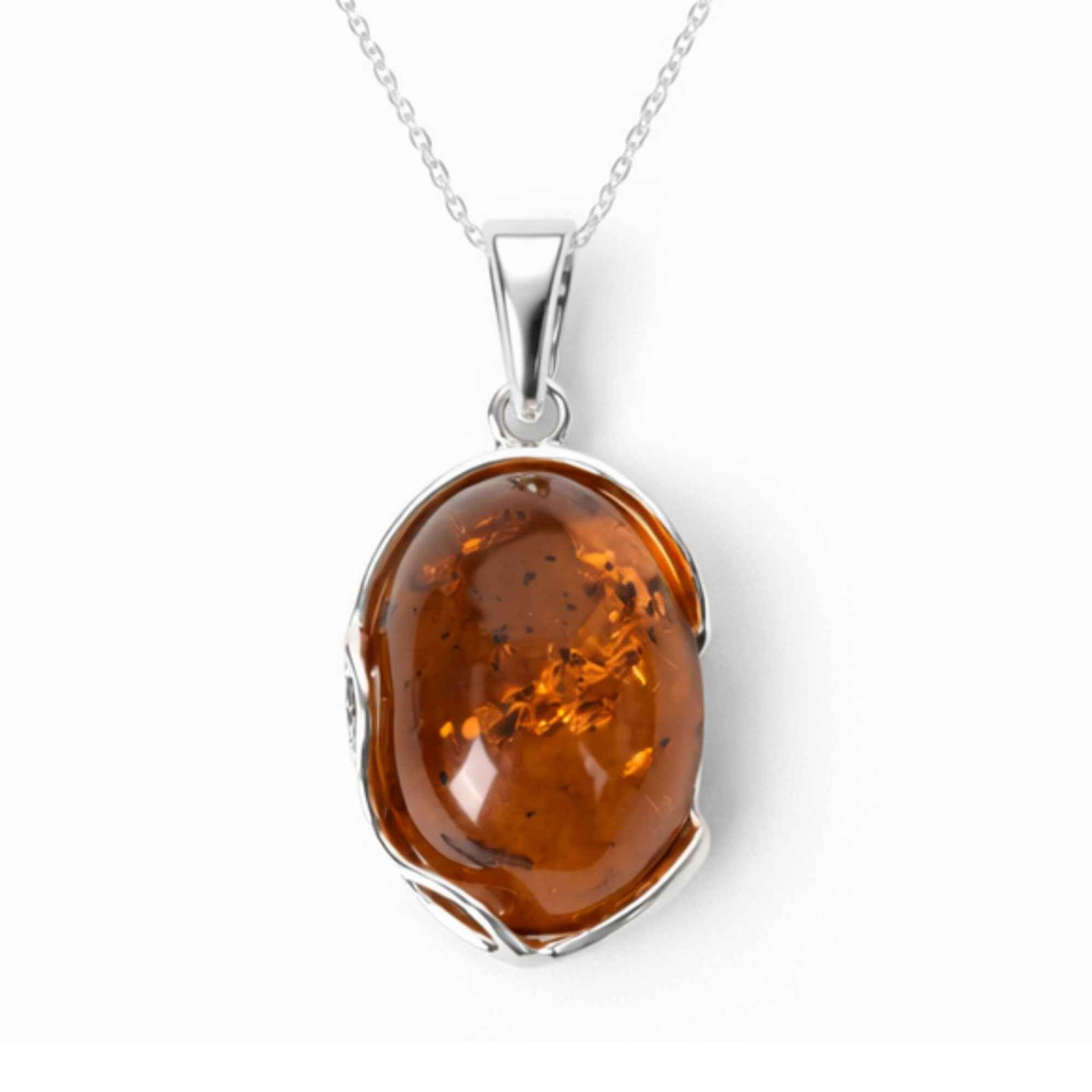 Acest colier din argint 925 cu pandantiv oval mare din chihlimbar natural aduce căldura soarelui și eleganța naturii într-o piesă rafinată, ușor de purtat în fiecare zi.