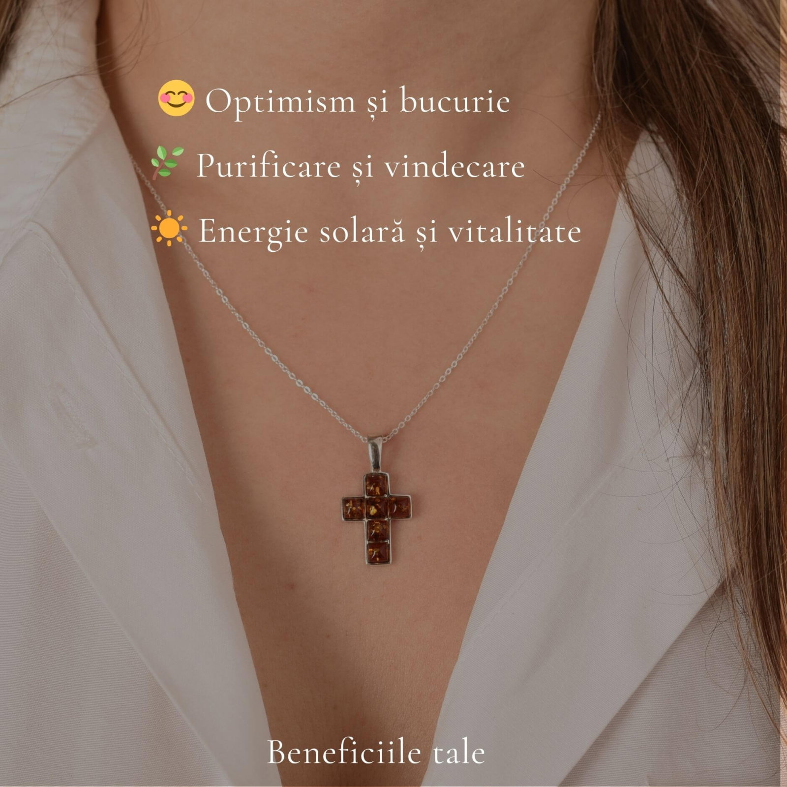 Crucea cu chihlimbar natural este un simbol purtat aproape de inimă – credință, protecție și lumină, într-o formă delicată și profundă.