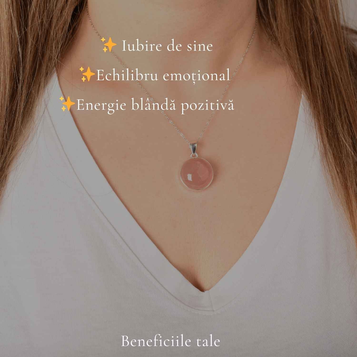 Colierul din argint 925 cu Cuart Roz natural, în formă rotundă, este o bijuterie delicată care aduce liniște și echilibru emoțional. Purtat aproape de inimă, îți amintește să fii mai blândă cu tine și să lași iubirea să curgă natural în viața ta.