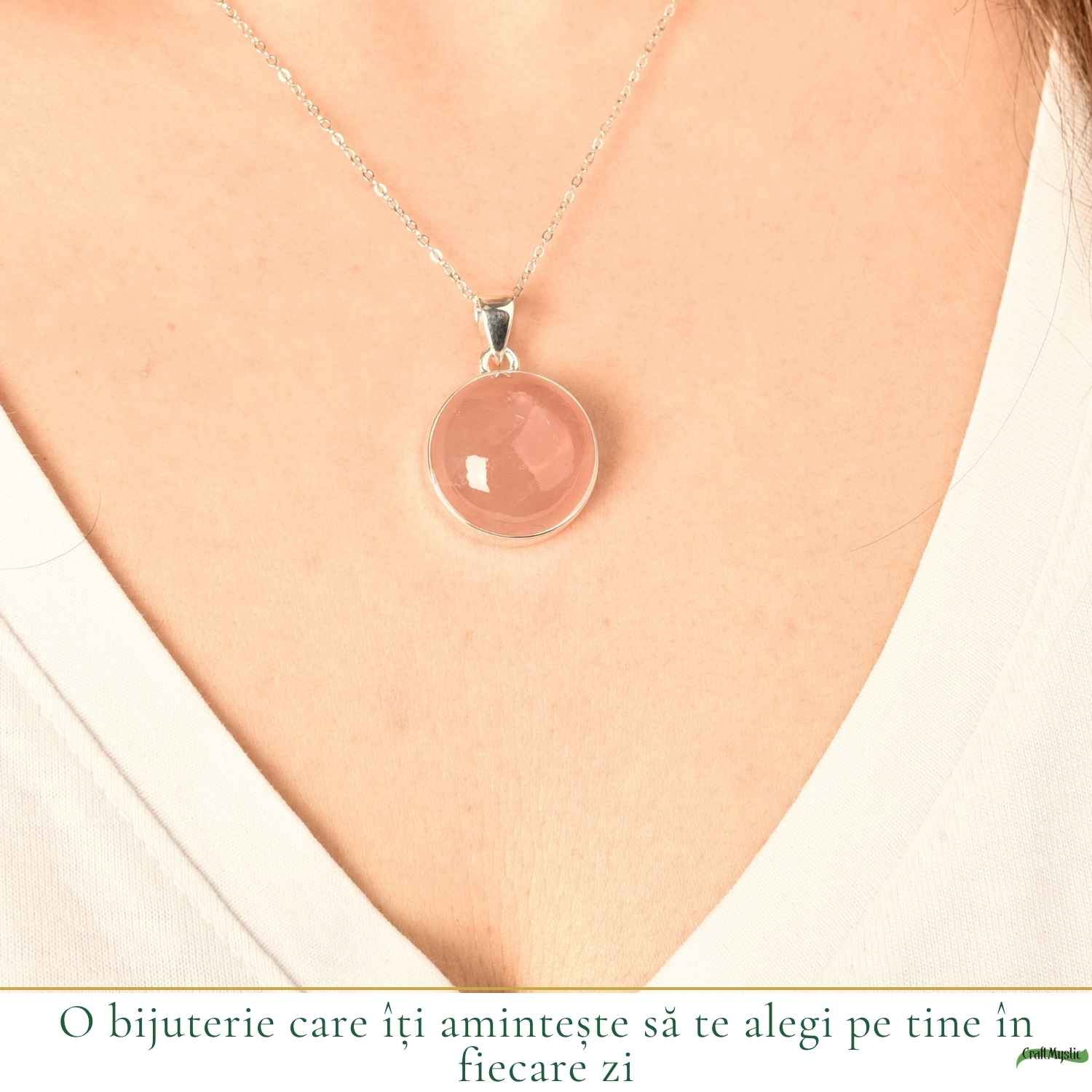 Colierul cu Cuart Roz este acel detaliu discret care îți aduce liniște și căldură în fiecare zi.
