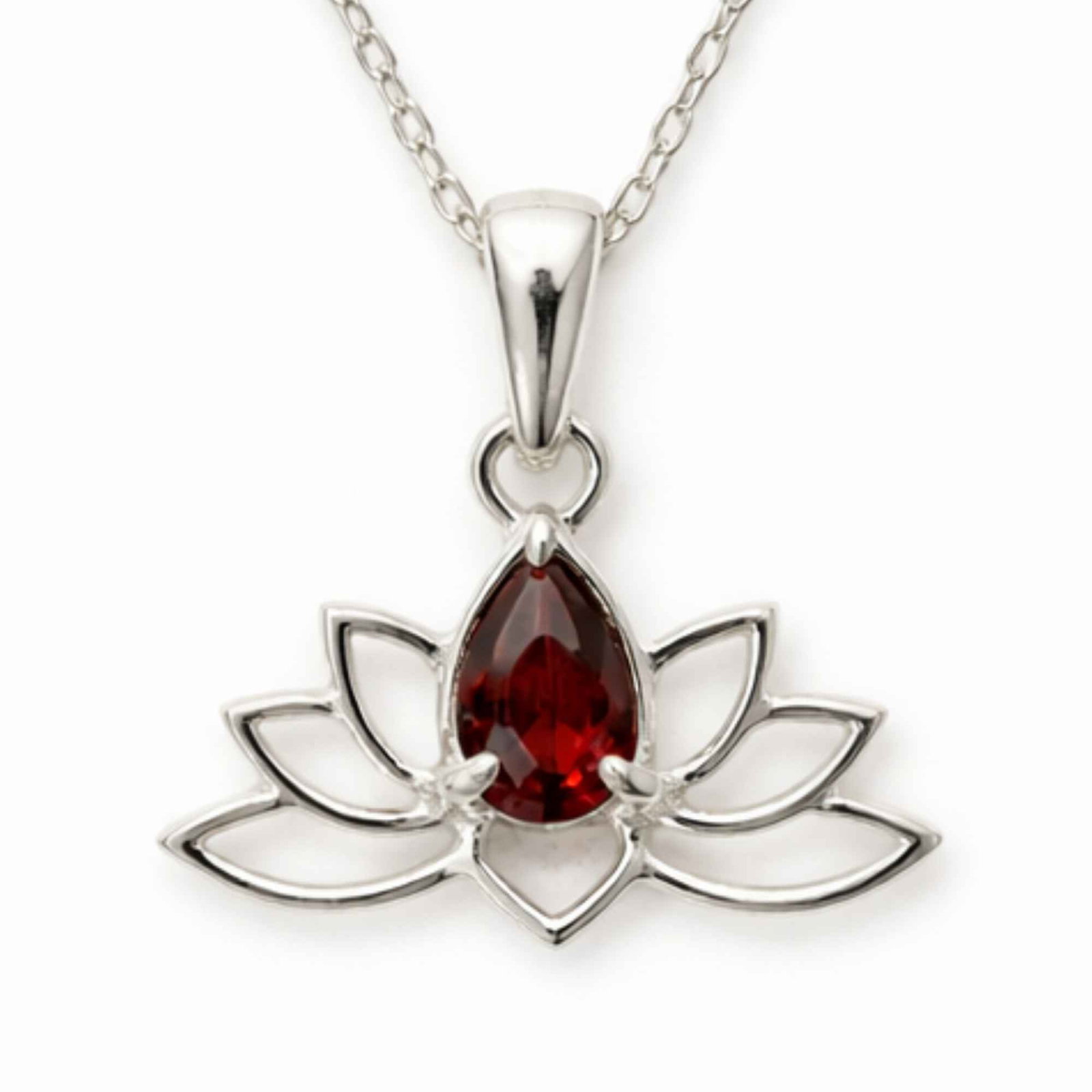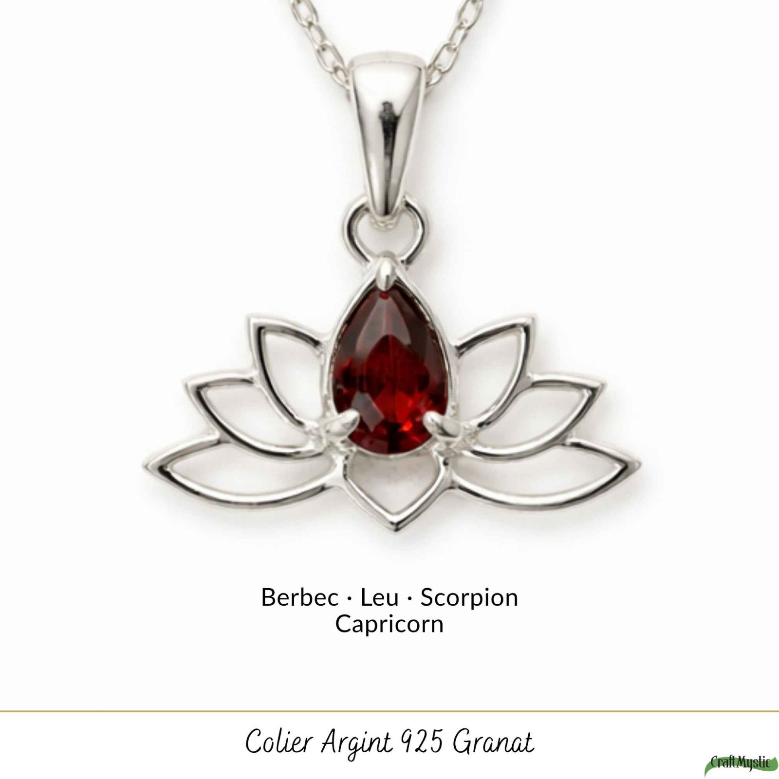 Colier delicat din argint 925 cu granat natural, în simbol floare de lotus, ce îți amintește de puterea ta de a renaște. Ușor și feminin, îl porți ca un talisman al echilibrului și al energiei interioare
