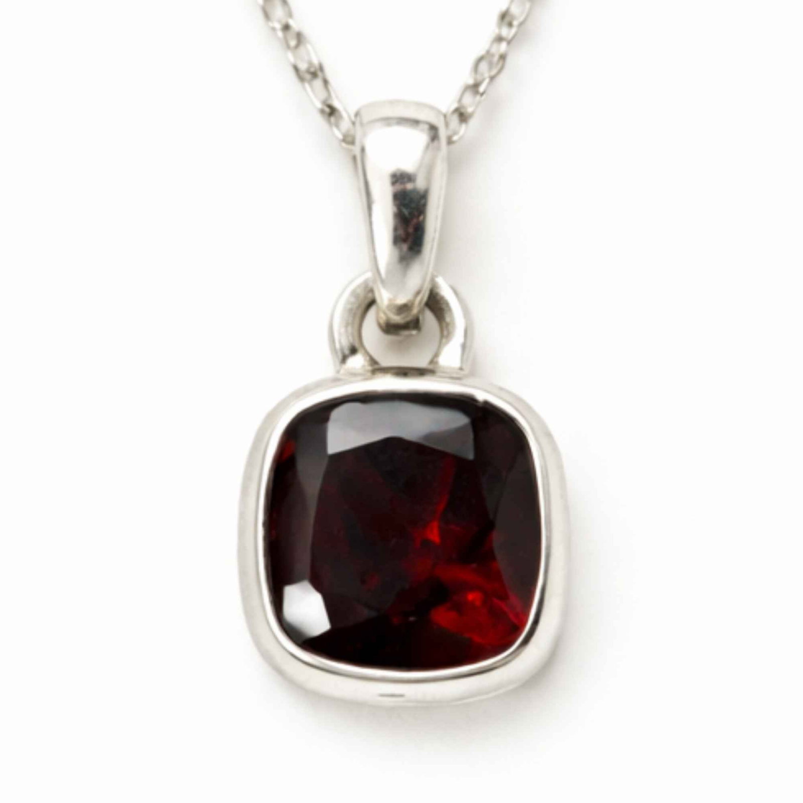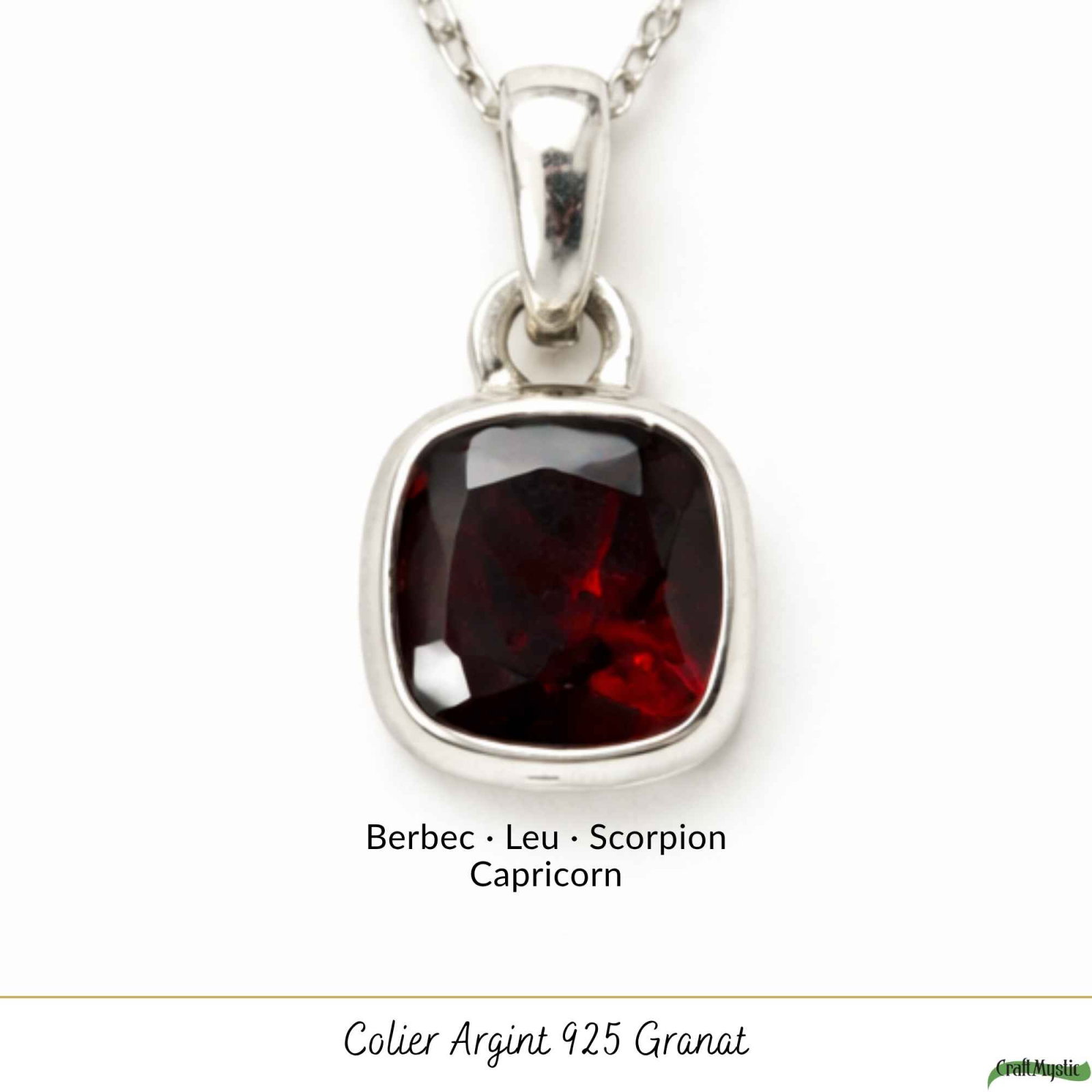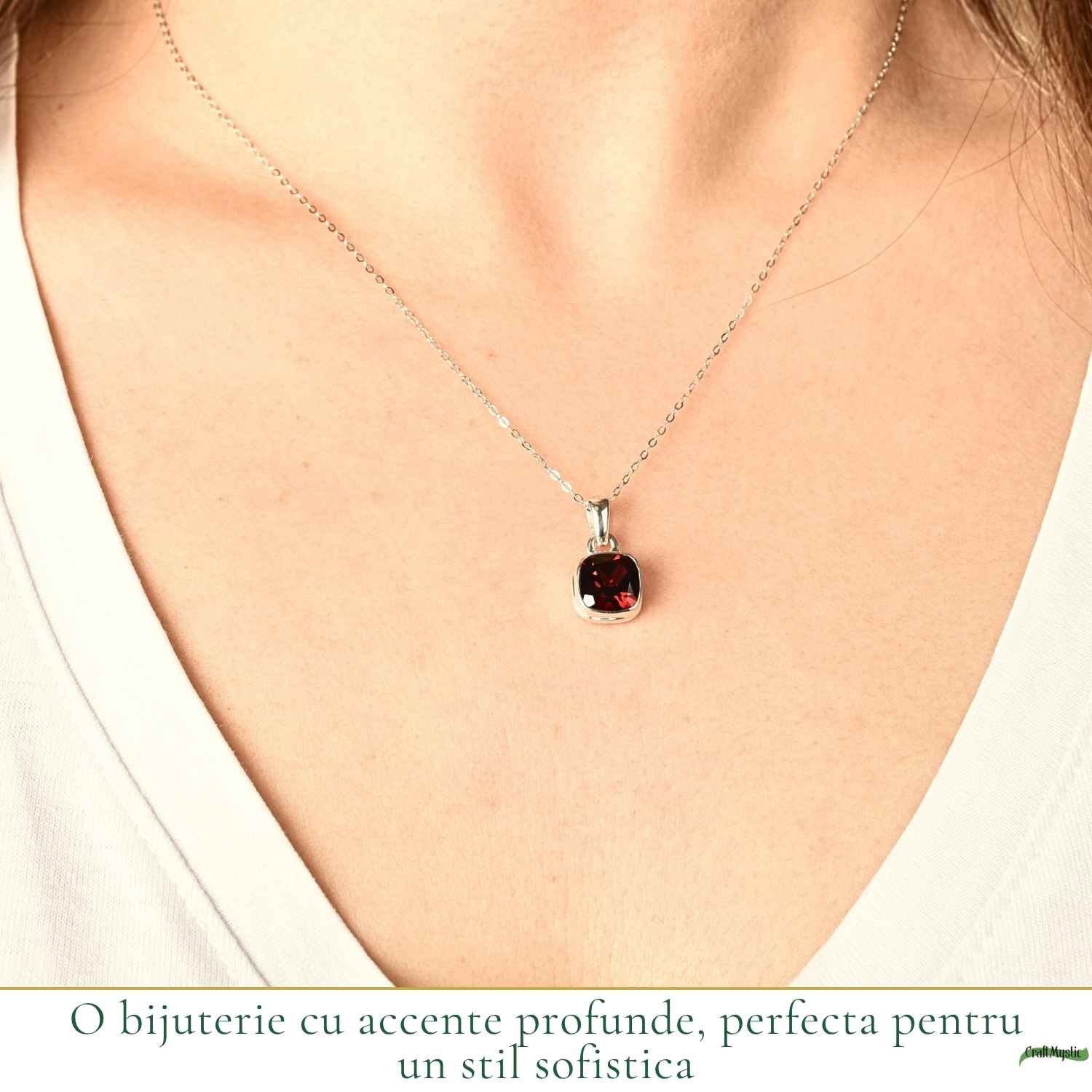 Colier din argint 925 cu granat natural în formă pătrată, simbol al stabilității și echilibrului. Simplu și ușor, îl porți zilnic ca un punct de ancorare și claritate în ritmul tău.