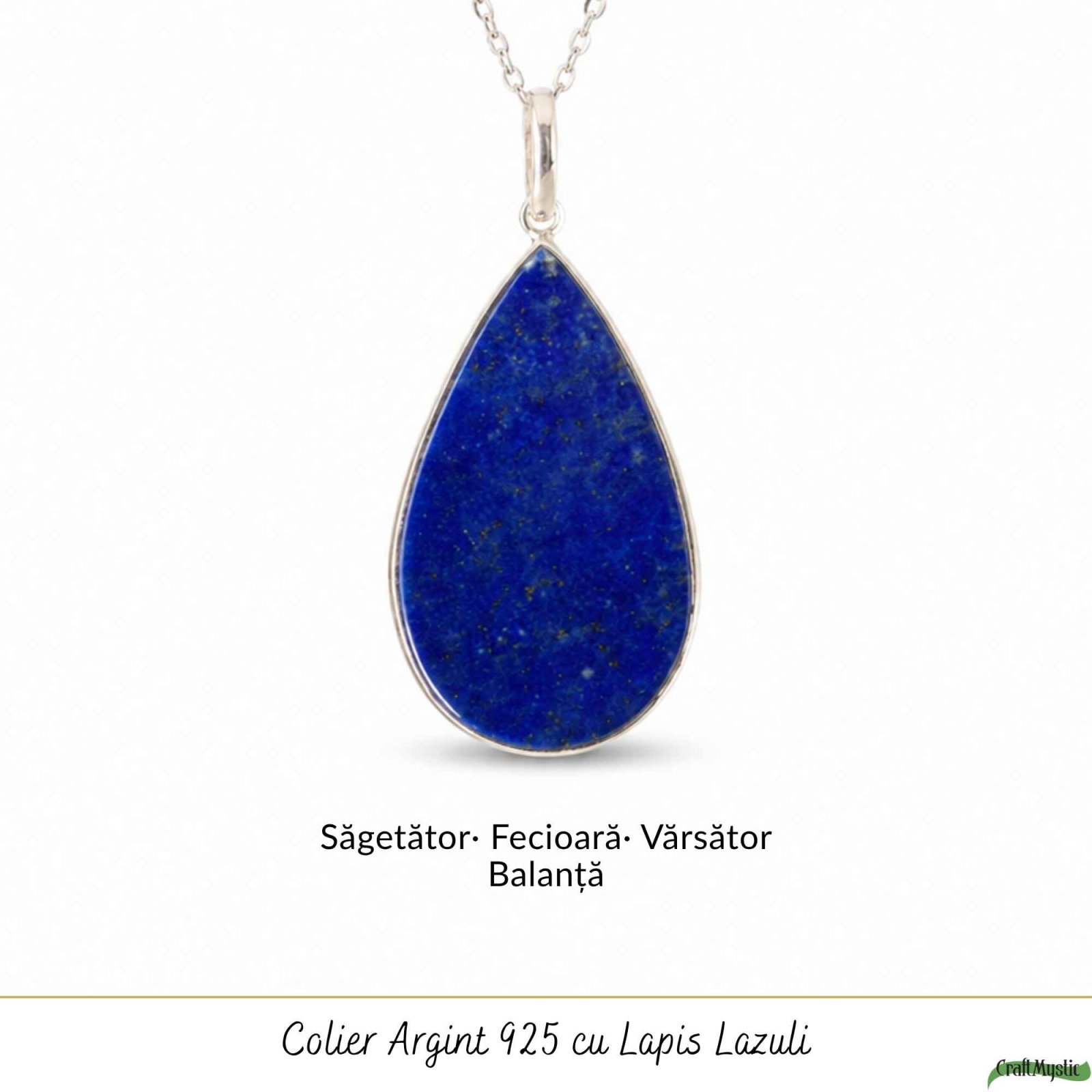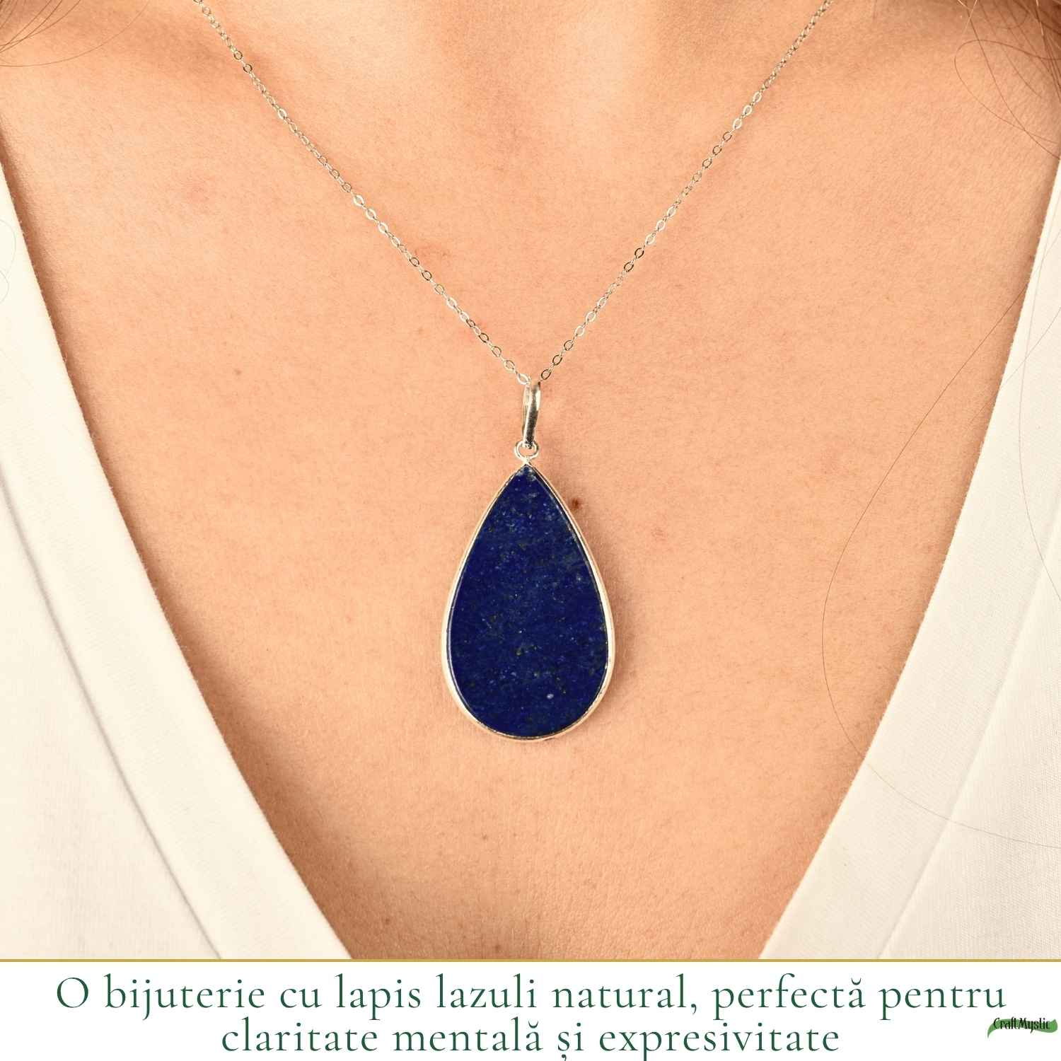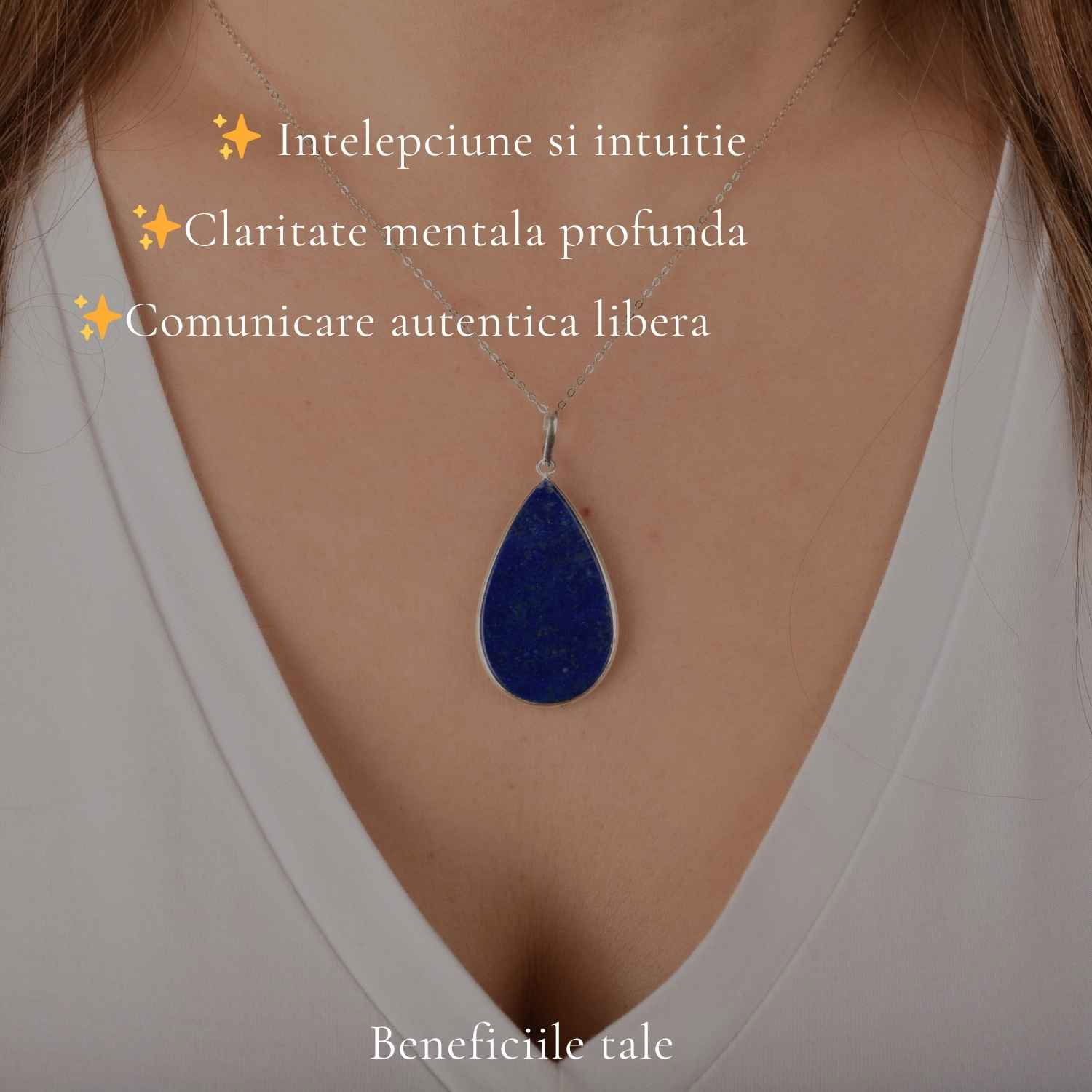 Colier din argint 925 cu lapis lazuli natural în formă de lacrimă, o bijuterie elegantă ce aduce claritate mentală și echilibru emoțional. Ușor și rafinat, îl porți zilnic ca un simbol al liniștii și autenticității tale