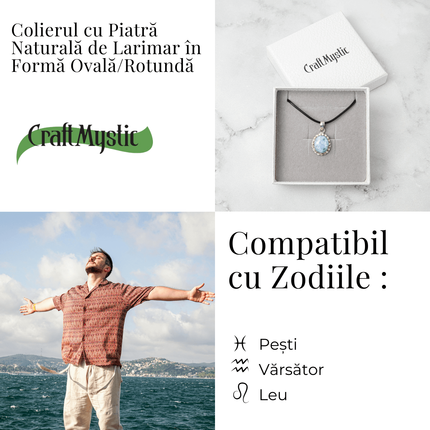 Poartă acest colier cu Larimar ca pe o amuletă a liniștii, un fragment de ocean purtat aproape de inimă. Fiecare nuanță a pietrei îți amintește să îți regăsești calmul, să iubești autentic și să comunici din suflet.