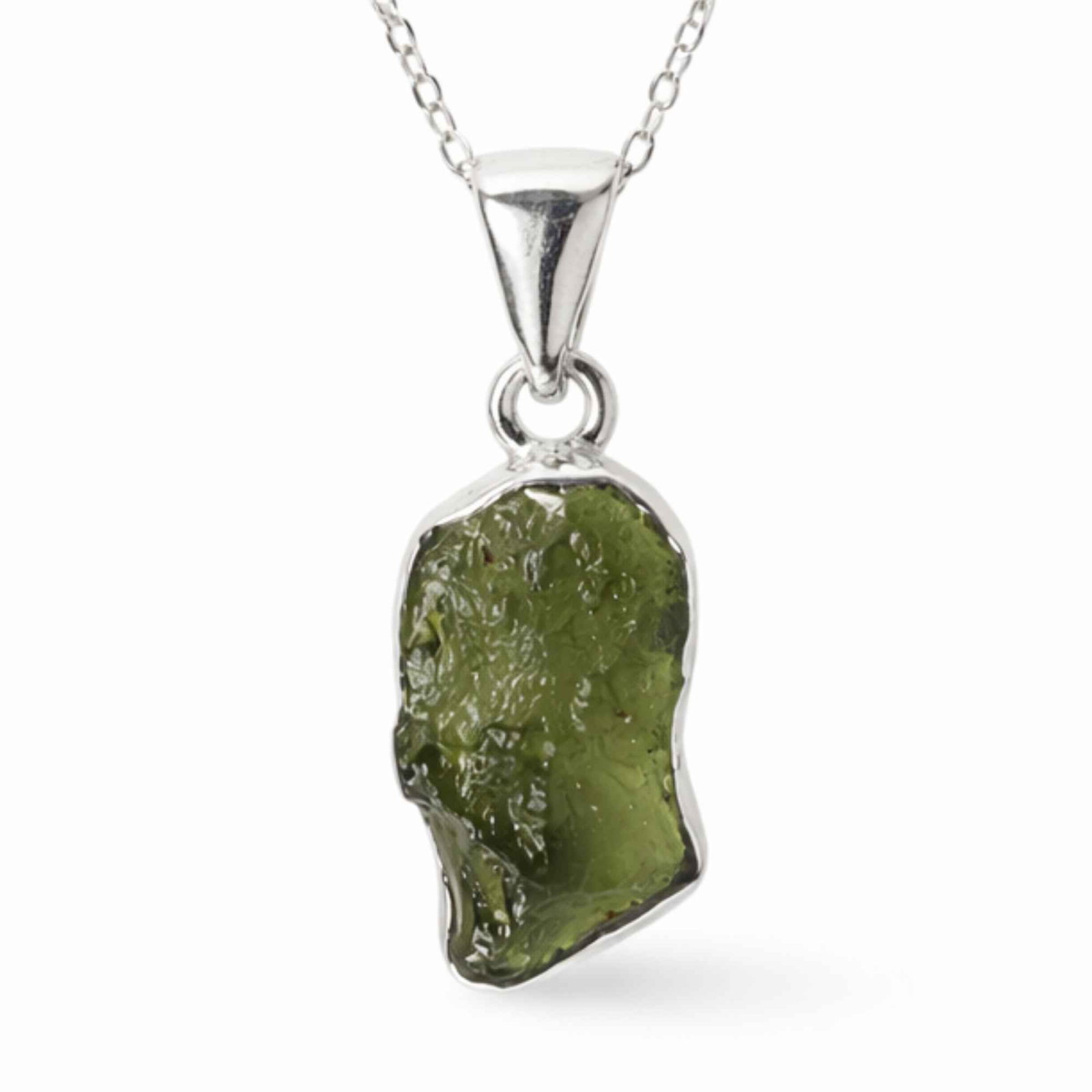 Colier din argint 925 cu moldavit brut, o piatră rară de origine cosmică, cu formă naturală unică. Te însoțește în momentele de schimbare, susținându-ți intuiția și claritatea. Este ușor și confortabil, perfect de purtat zilnic ca un simbol al evoluției tale.