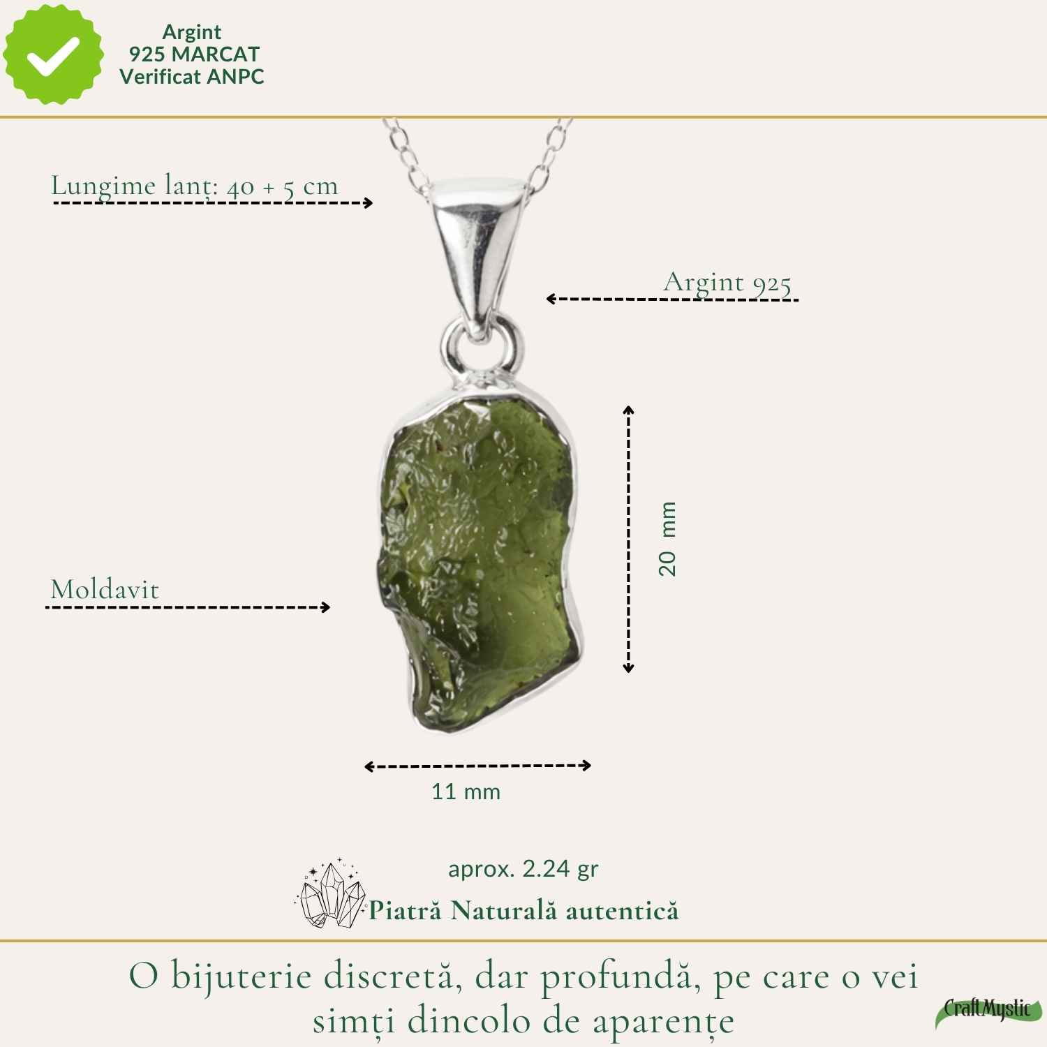Colierul ajunge la tine ambalat elegant, în cutie CraftMystic, pregătit pentru cadou sau pentru tine.