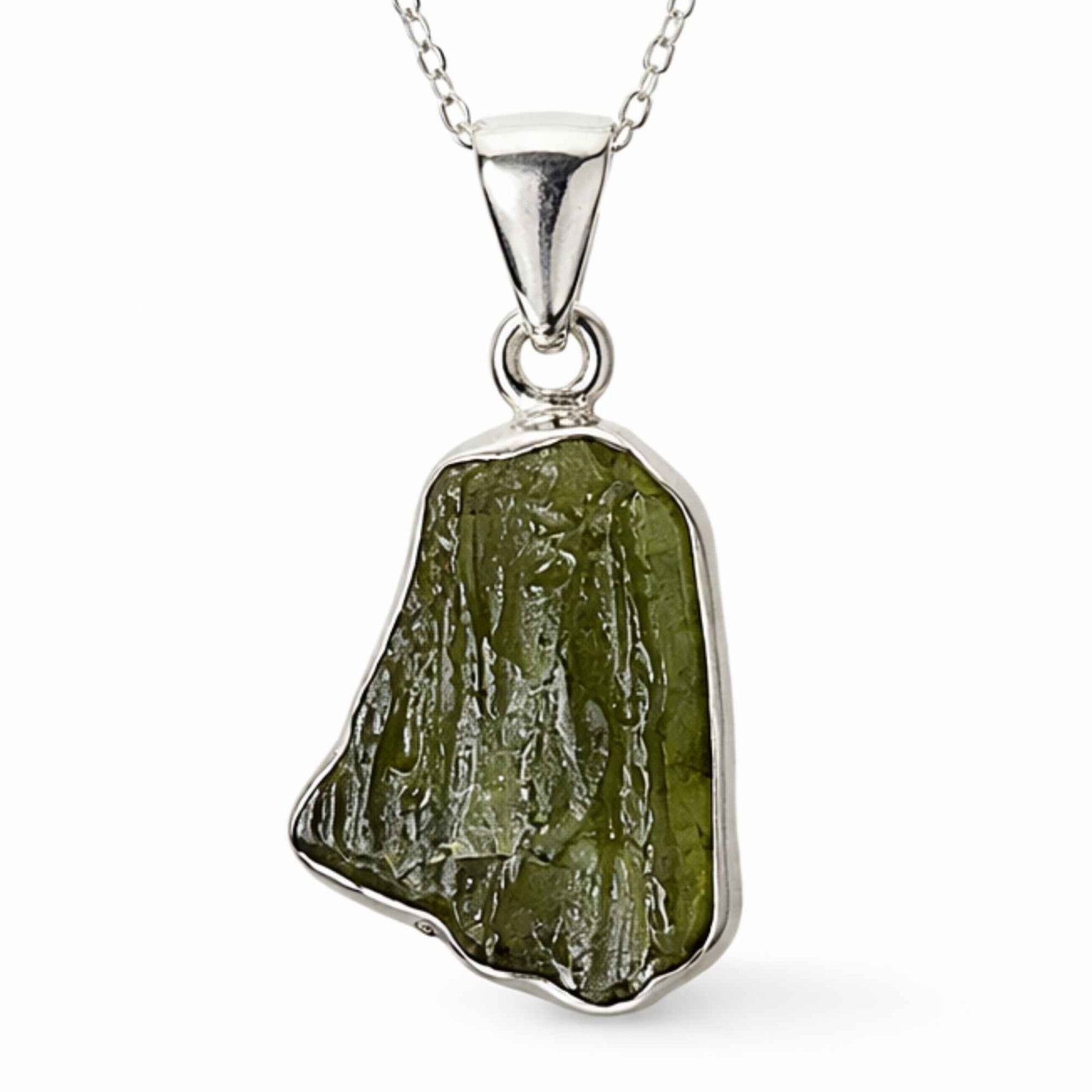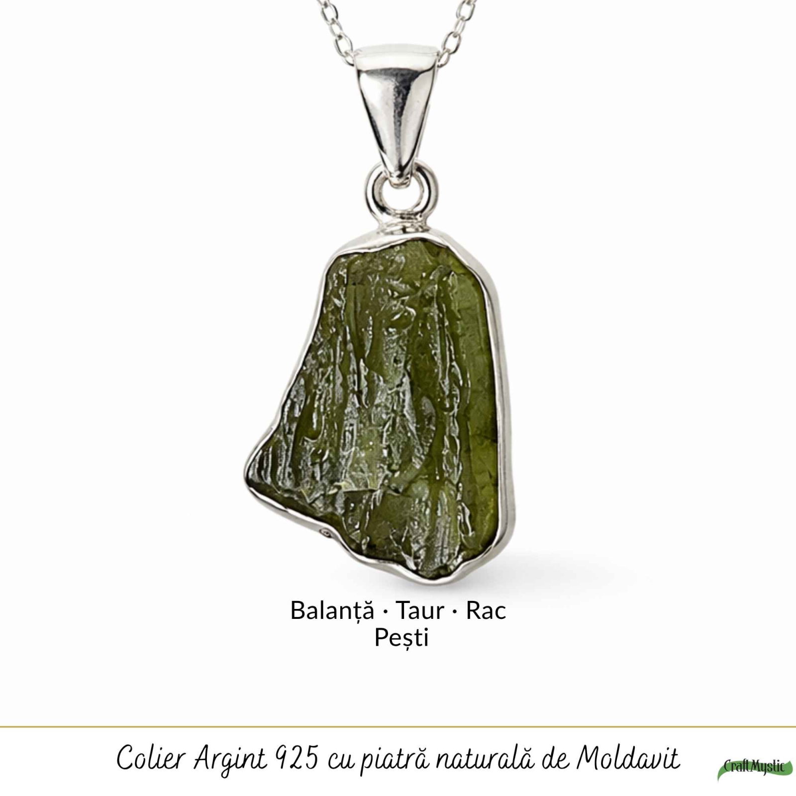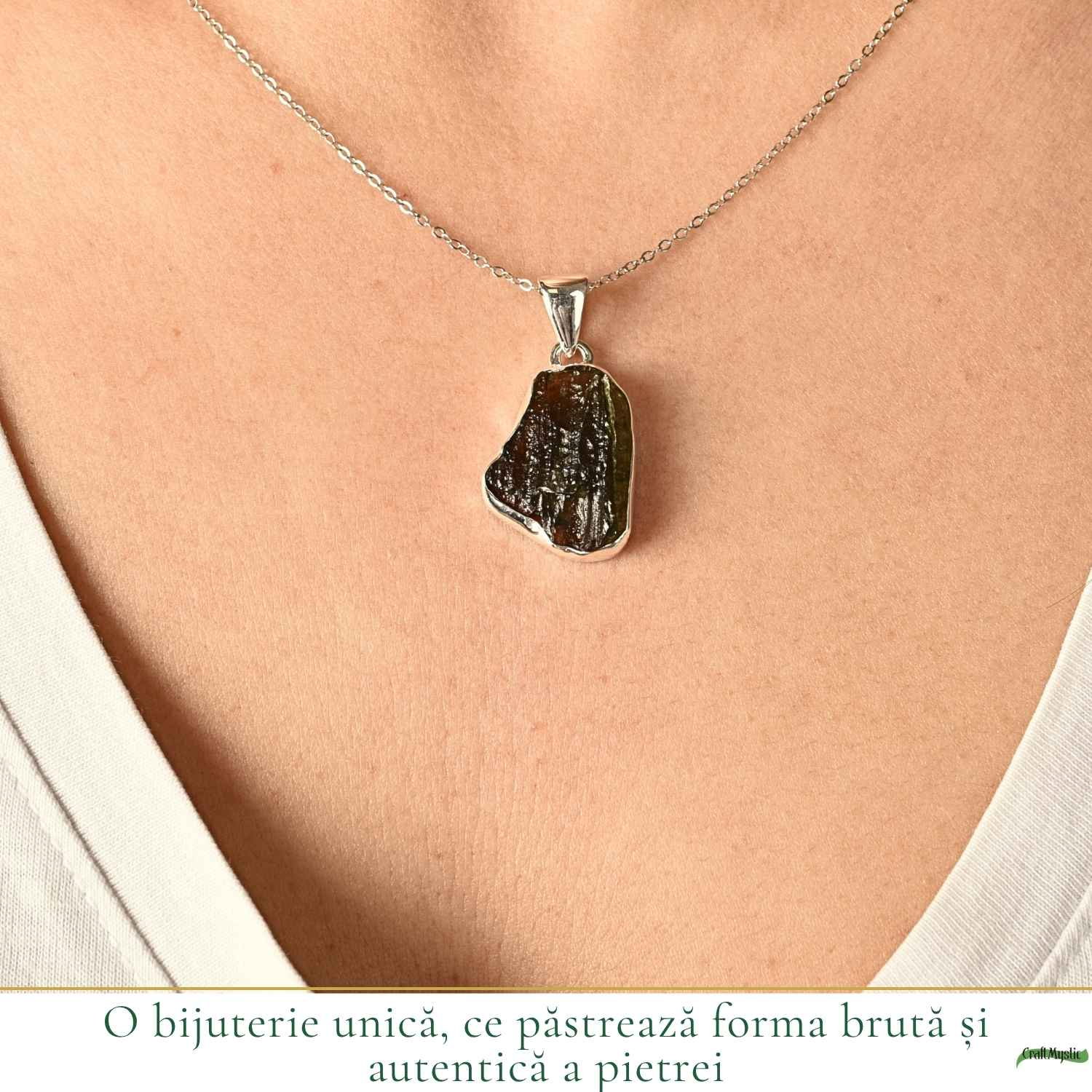 Colier din argint 925 cu moldavit brut, o piatră rară de origine cosmică, cu formă naturală unică. Creat pentru momentele în care simți că vrei mai mult de la tine, acest colier îți susține intuiția și transformarea. Este ușor și confortabil, perfect de purtat zilnic ca simbol al evoluției tale.