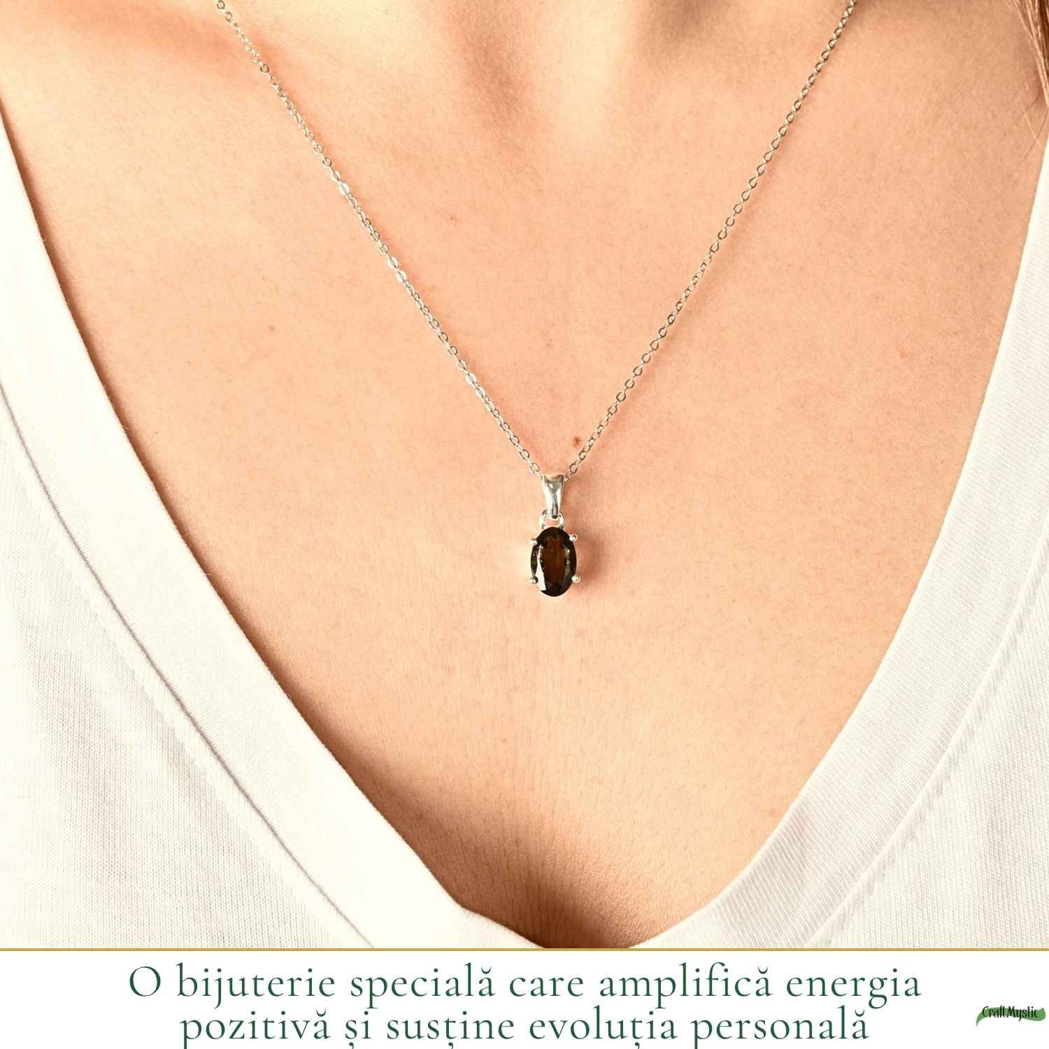 O bijuterie delicată cu moldavit natural, pentru momentele în care simți că vrei să evoluezi și să te reconectezi cu tine. Ușor de purtat și plin de semnificație, acest colier din argint 925 aduce claritate, intuiție și o energie profund transformatoare.