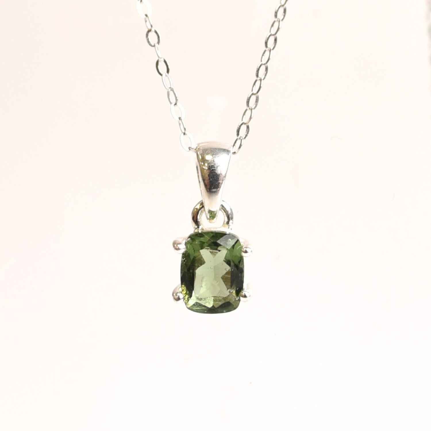 Piatra: Moldavit natural fațetat (formă dreptunghiulară, origine: Republica Cehă)