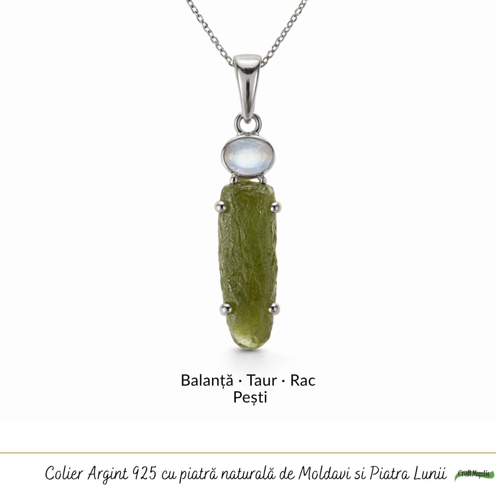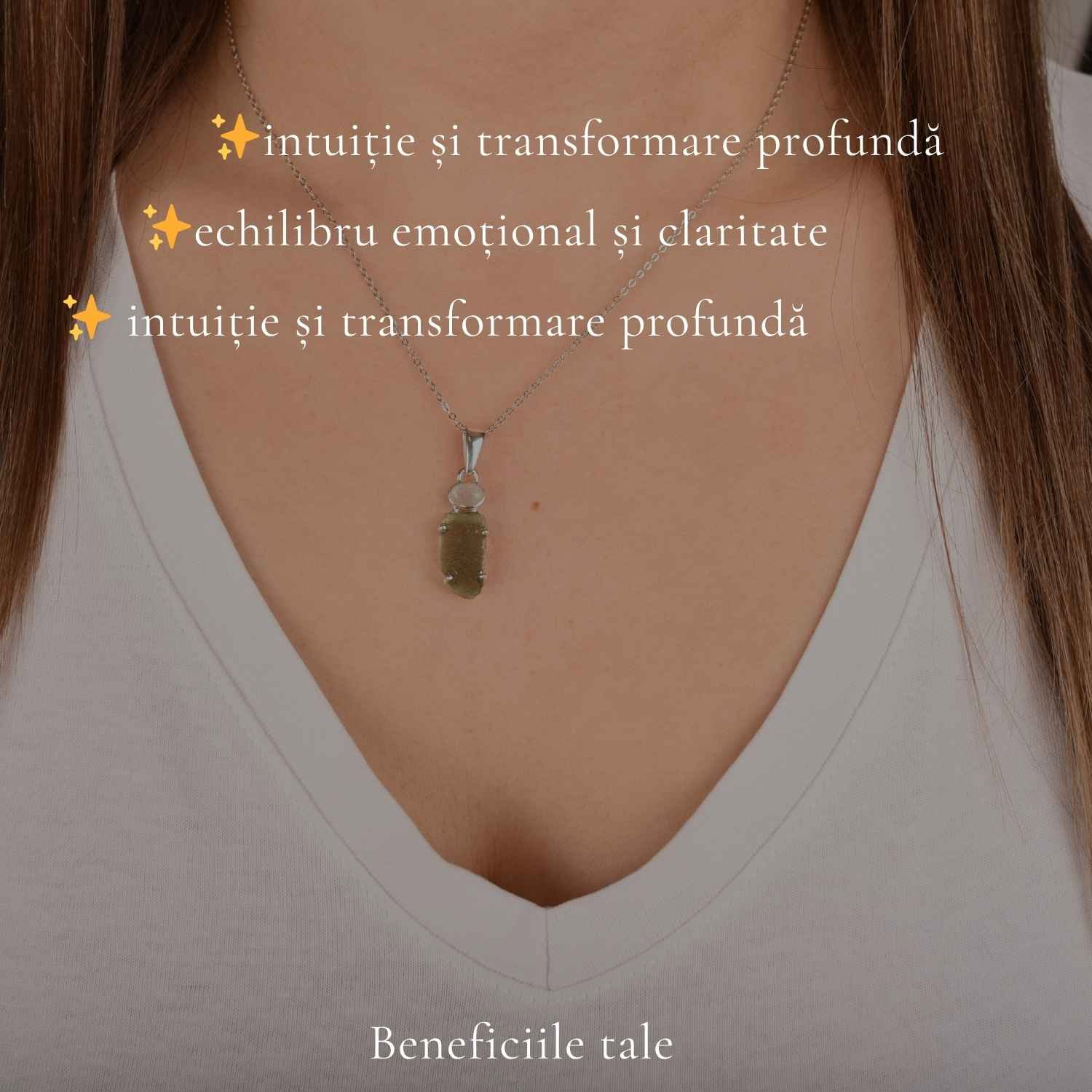 Un colier delicat cu moldavit și piatra lunii, creat pentru echilibru și intuiție. Ușor de purtat și plin de energie subtilă, te însoțește discret în momentele în care vrei să te reconectezi cu tine.