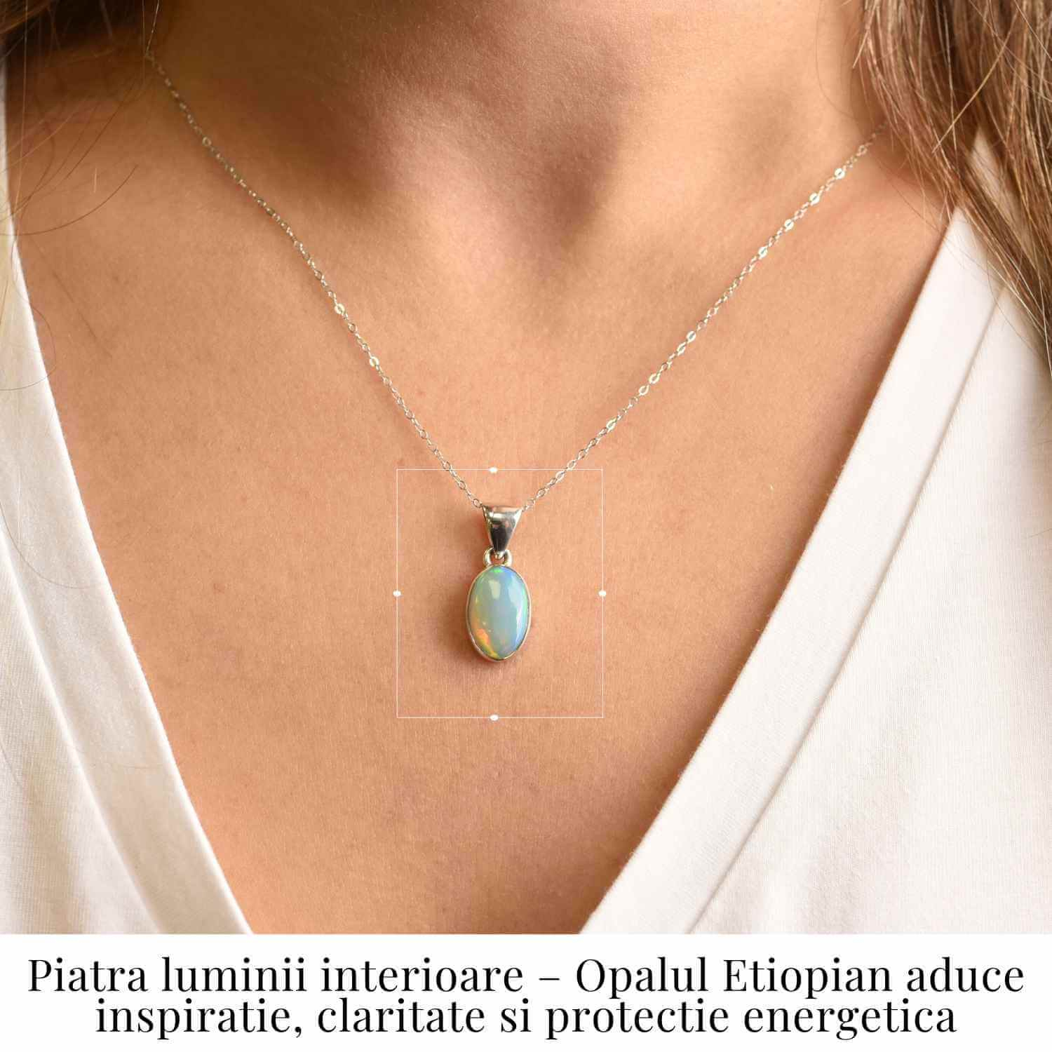 Un colier care poartă magia cerului prinsă în piatră. Opalul Etiopian, cu reflexe care dansează între verde, albastru și foc interior, aduce energie de renaștere, claritate și inspirație divină.