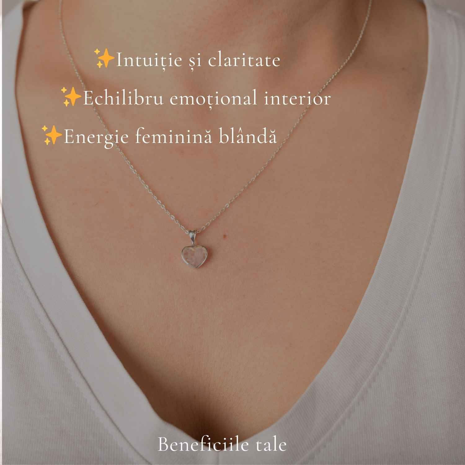 Uneori ai nevoie doar de un simbol mic care să-ți amintească să fii mai blândă cu tine. Colierul cu Piatra Lunii în formă de inimă este exact acel detaliu care îți aduce liniște și căldură.