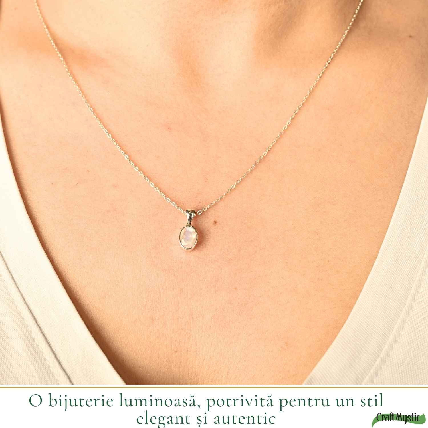 Colier delicat din argint 925 cu Piatra Lunii naturală în formă ovală, simbol al echilibrului și intuiției. Ușor și discret, îl porți zi de zi ca pe o stare de liniște.