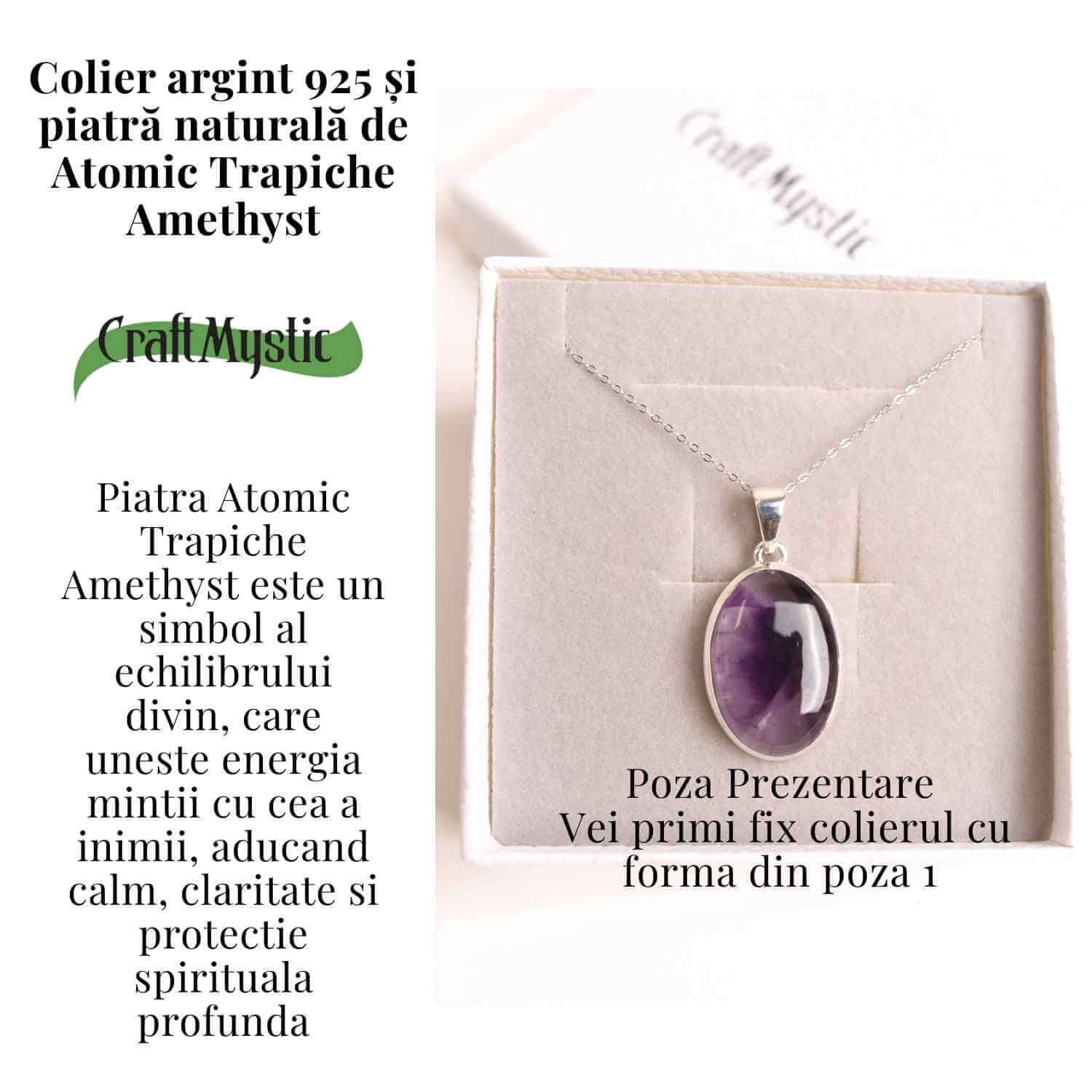 Poarta acest colier ca pe o fereastra catre universul tau interior. Fiecare reflex violet al ametistului te ghideaza spre liniste, armonie si puterea de a privi viata cu claritate si incredere.