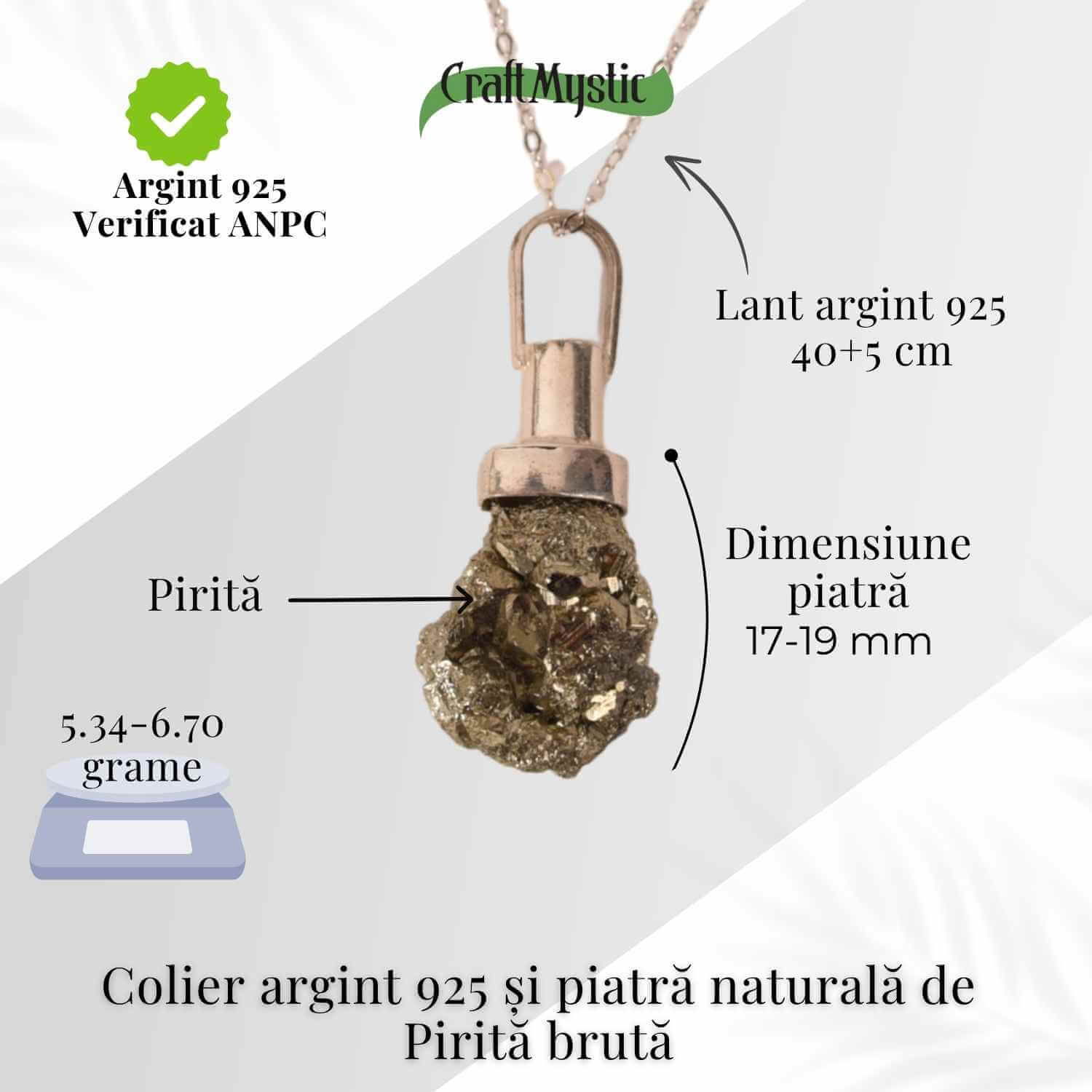 Colier Argint 925 cu Piatra Naturala de Pirita Bruta – Protectie si Energie Abundenta