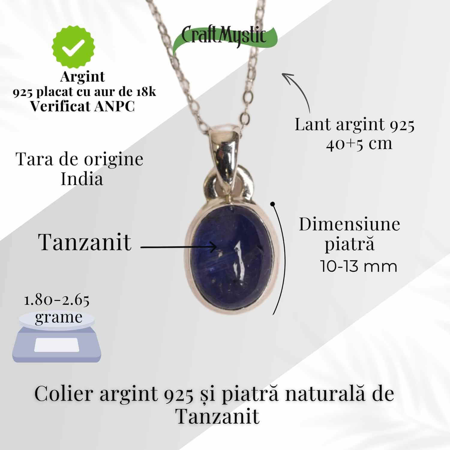 Acest colier din argint 925 cu Tanzanit oval este o bijuterie a echilibrului spiritual si a transformarii profunde. Forma ovala, simbol al ciclicitatii vietii si al armoniei, amplifica energia de renastere si curgere interioara. Tanzanitul, piatra albastru-violet a claritatii divine, sprijina evolutia personala, conecteaza intuitia cu intelepciunea si deschide poarta catre o constiinta superioara.