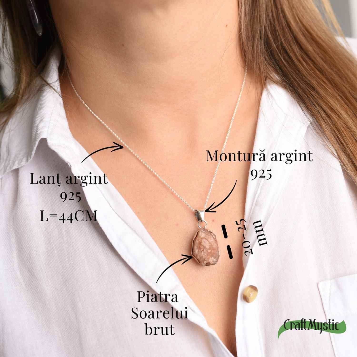 Colier Argint 925 cu Piatra Soarelui Brut - Energie Pozitiva