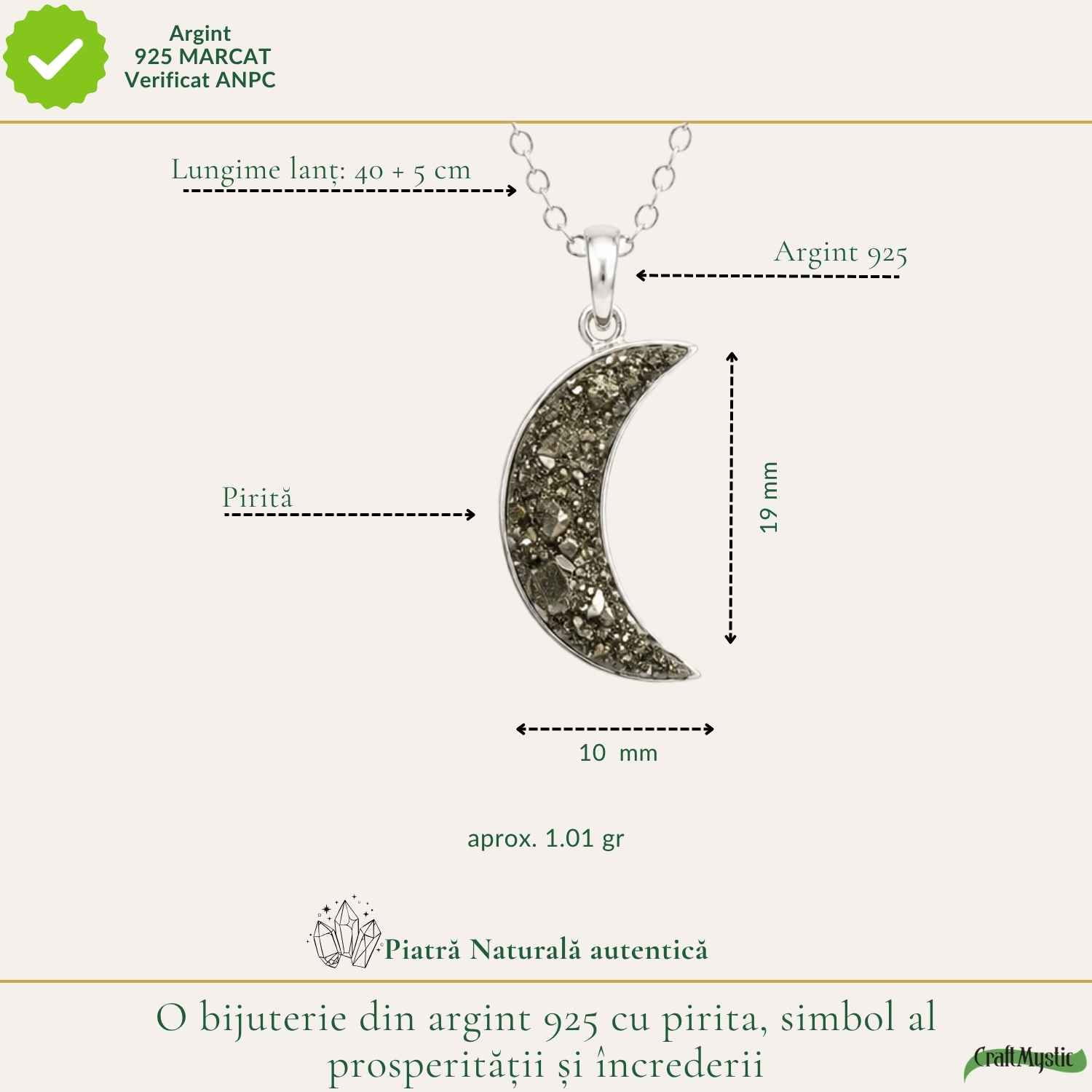 Colierul cu pirită în formă de semilună îți aduce acel echilibru subtil între protecție și încredere în tine.