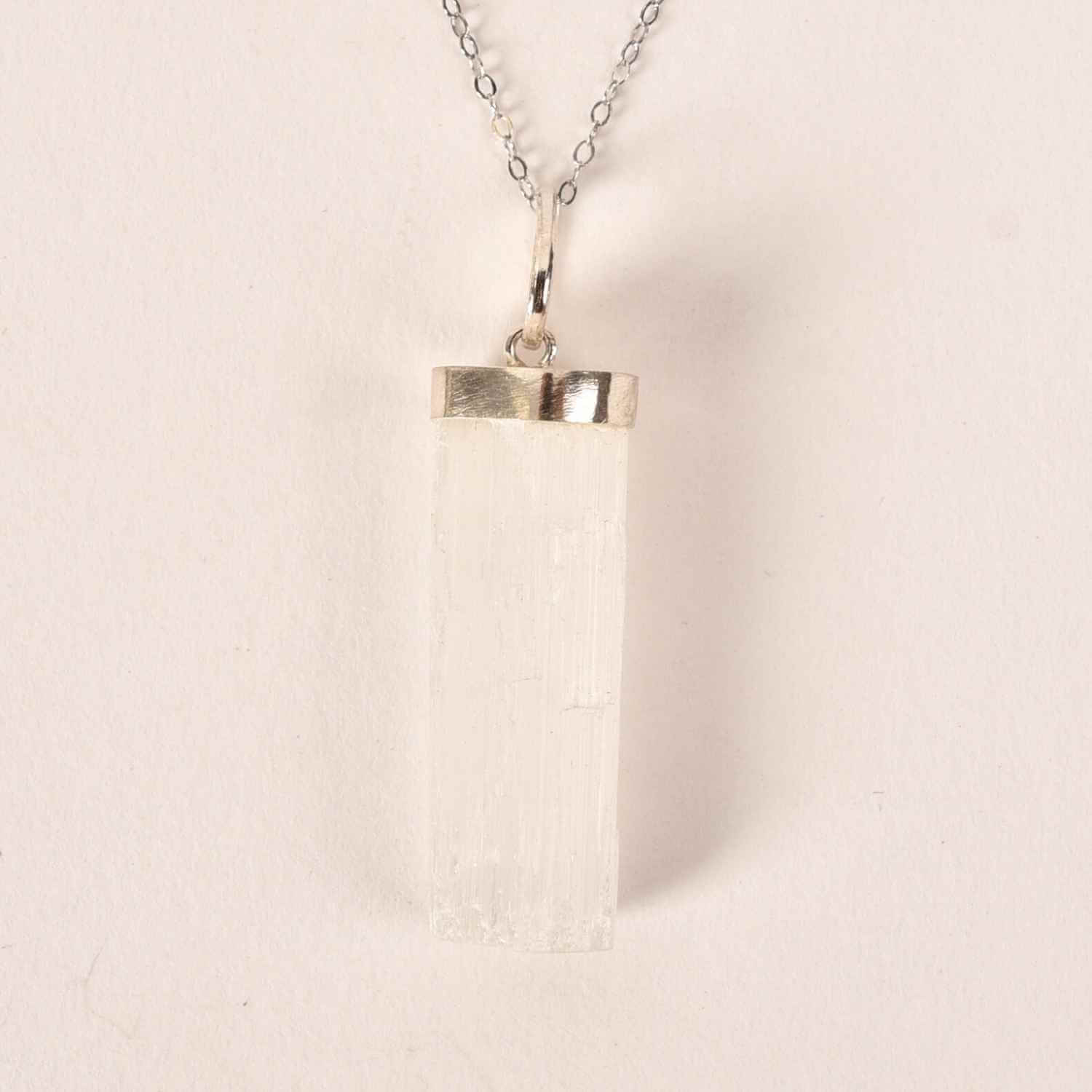 Acest colier cu selenit natural, montat în argint 925, radiază o energie de puritate, liniste si protectie divina. Pandantivul in forma de turnulet vertical simbolizeaza inaltarea spirituala si legatura cu taramul divin, ghidandu-te spre claritate si pace interioara.