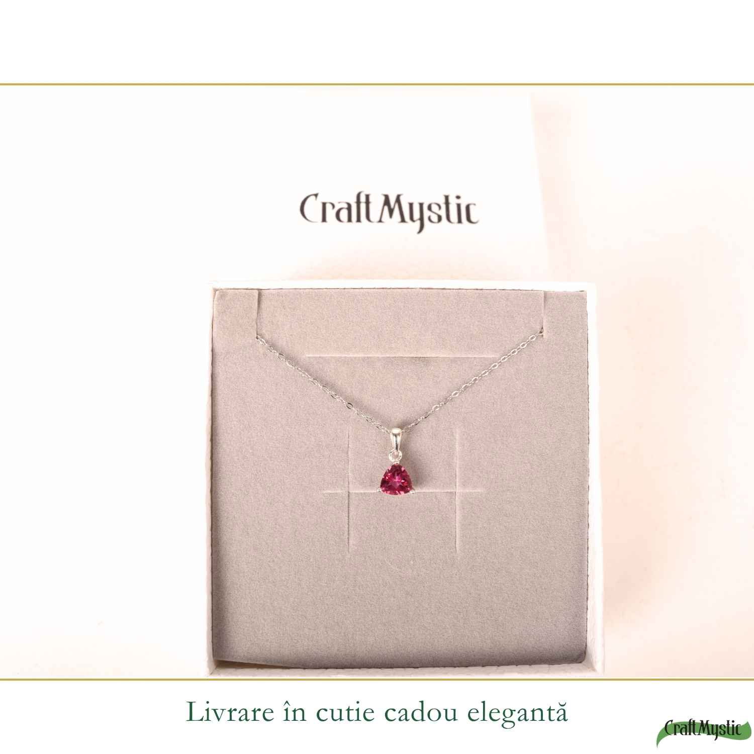 Topazul roz în formă de triunghi aduce acea energie fină de echilibru și feminitate pe care o simți din interior.