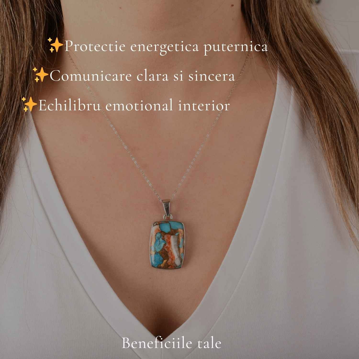 Colier din argint 925 cu turcoaz Arizona dreptunghi, o bijuterie ce aduce stabilitate și protecție. Cu un design echilibrat și elegant, îl porți ca simbol al liniștii și clarității interioare