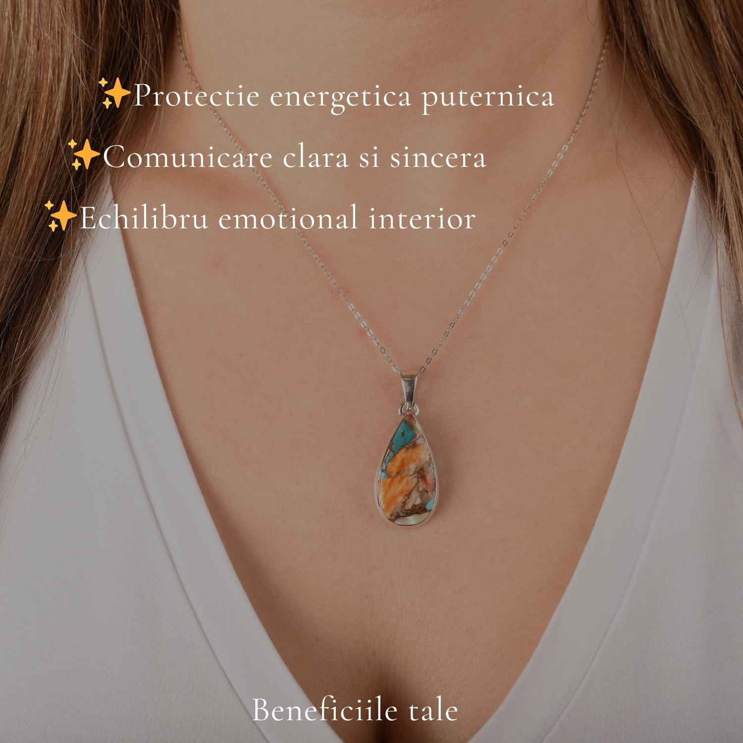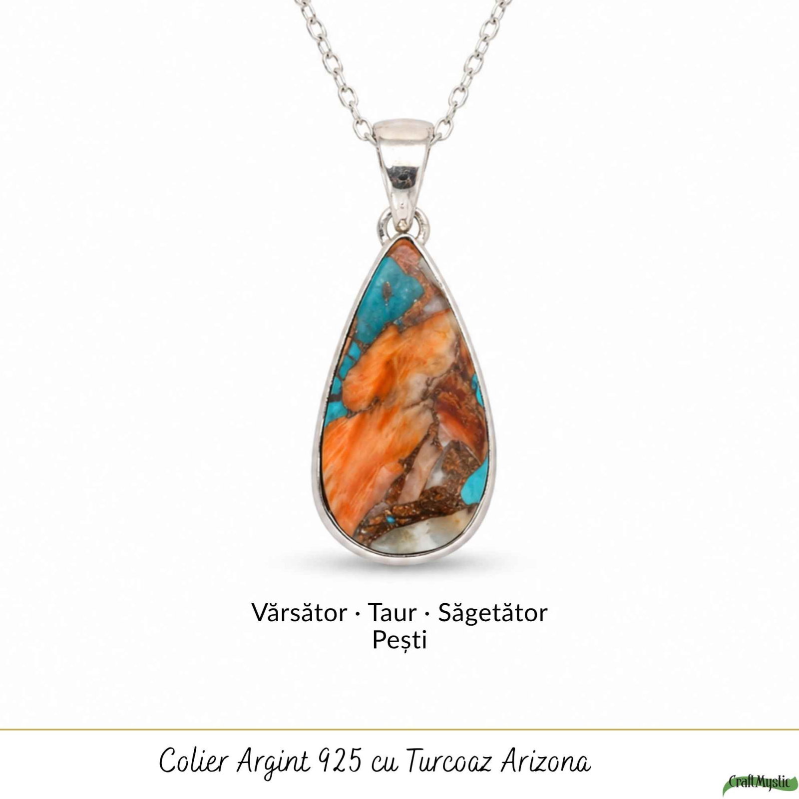 Colier din argint 925 cu turcoaz Arizona în formă de lacrimă, o bijuterie ce aduce protecție și echilibru. Elegant și ușor, îl porți zilnic ca un simbol al liniștii și al comunicării autentice