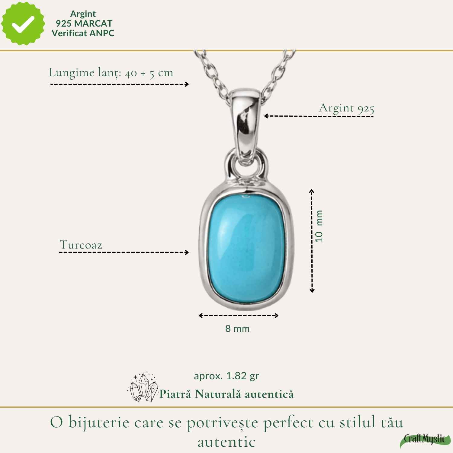 Colierul vine ambalat în cutie elegantă CraftMystic, pregătită pentru cadou sau pentru tine. Livrarea este rapidă, direct la ușa ta.