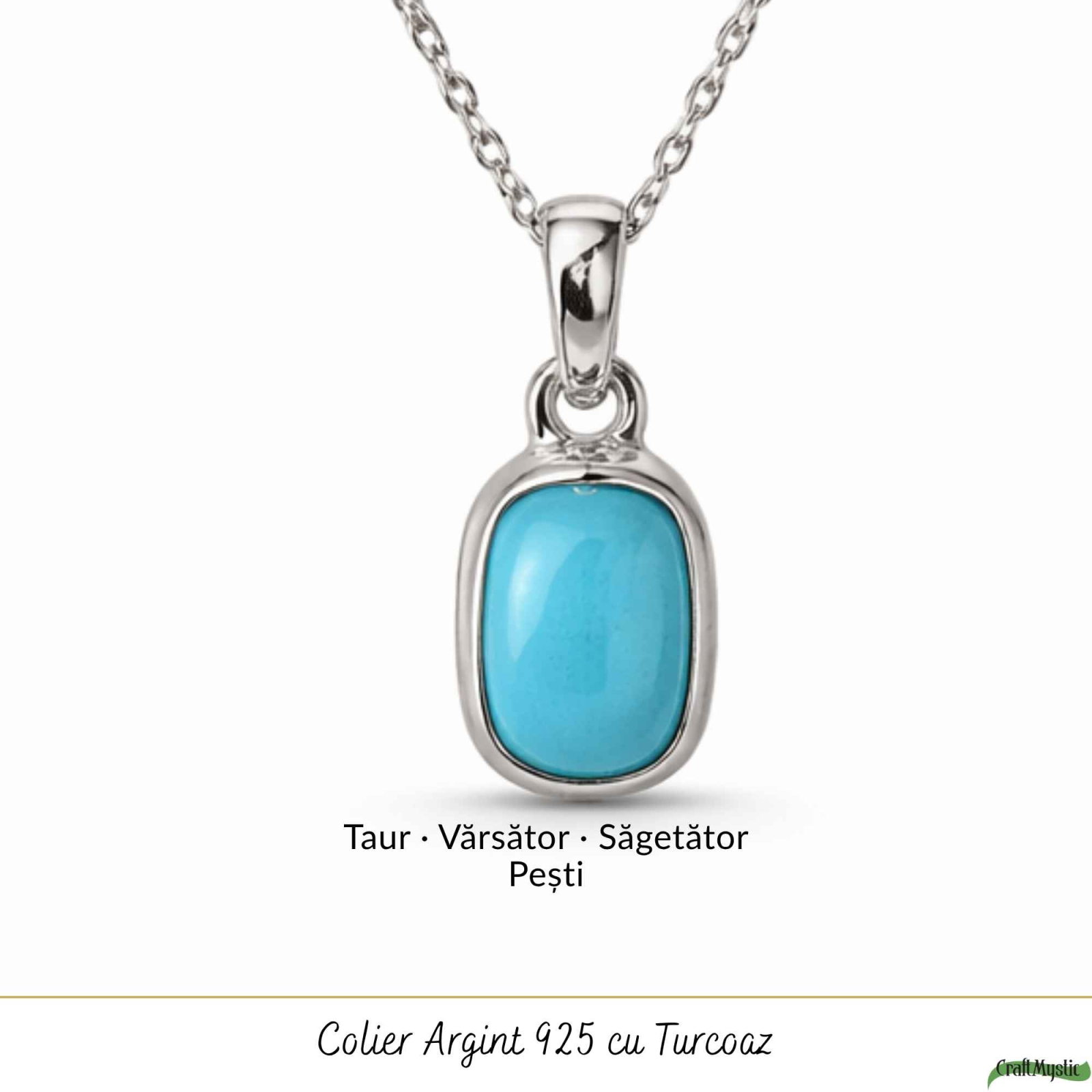 Colier delicat din argint 925 cu Turcoaz natural, în formă dreptunghiulară – simbol al clarității și stabilității. Foarte ușor, îl porți zilnic ca să rămâi centrat(ă) și conectat(ă) la tine.