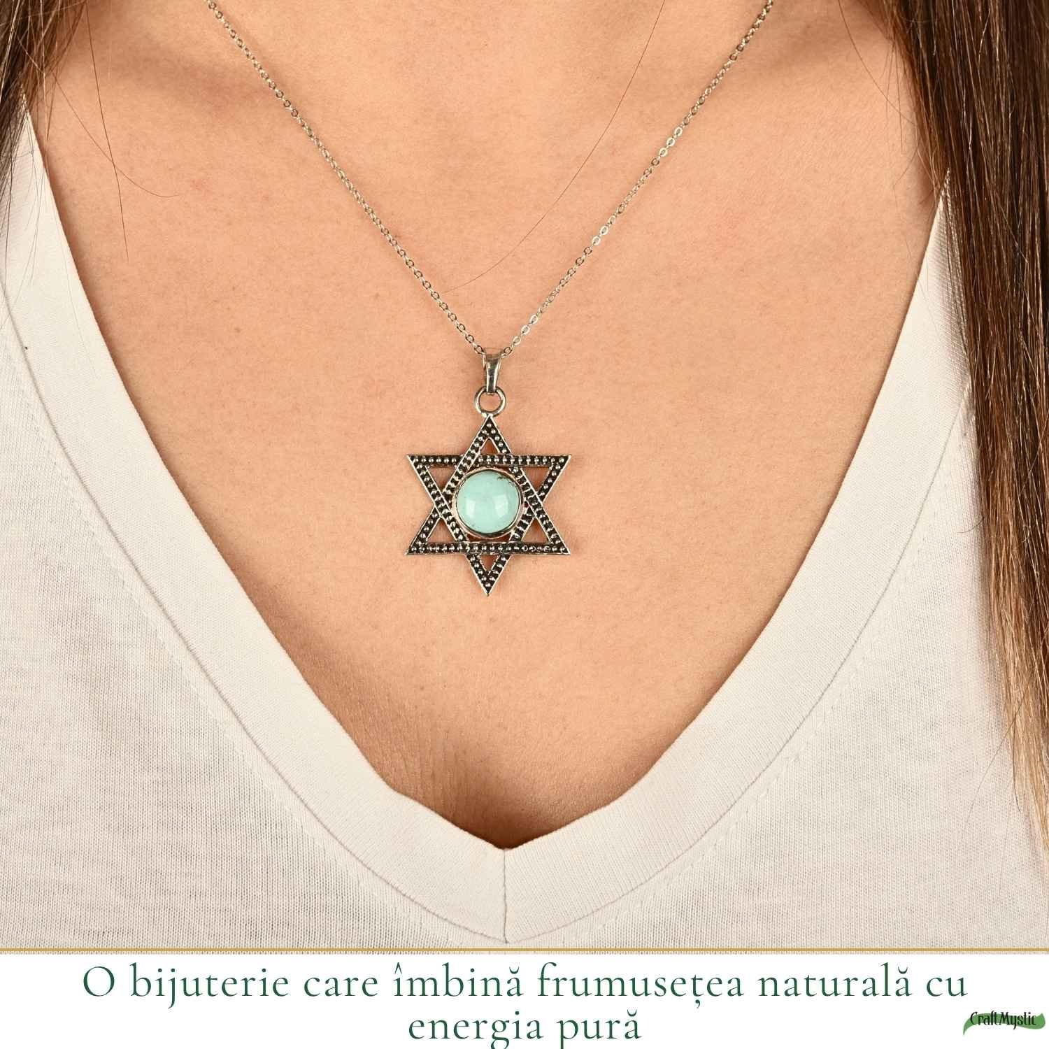 Colier din argint 925 cu Turcoaz natural, în formă de stea – simbol al ghidării și inspirației. Ușor și plin de semnificație, îl porți ca să rămâi conectat(ă) la drumul tău.