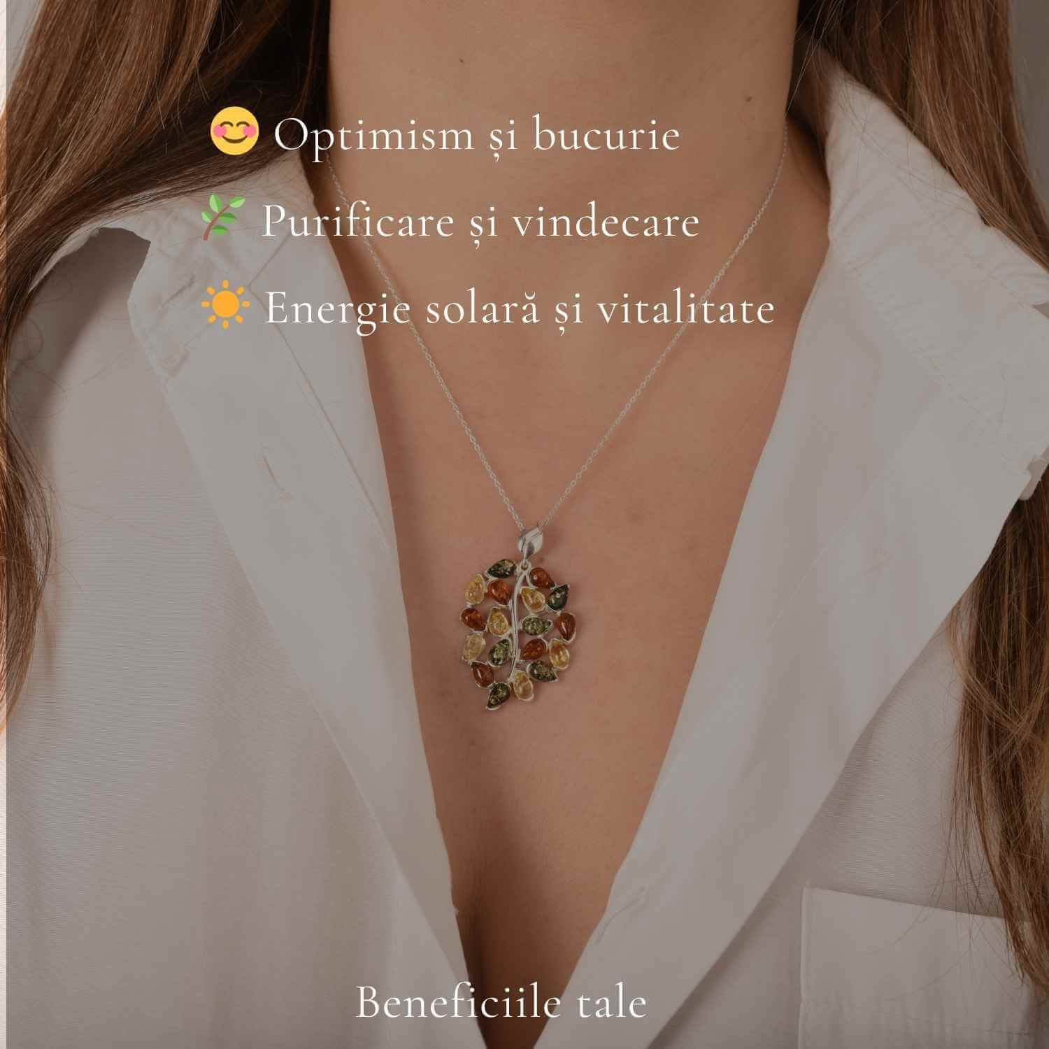 Cu chihlimbar multicolor natural, acest colier aduce la gâtul tău lumină, căldură și energie solară autentică.