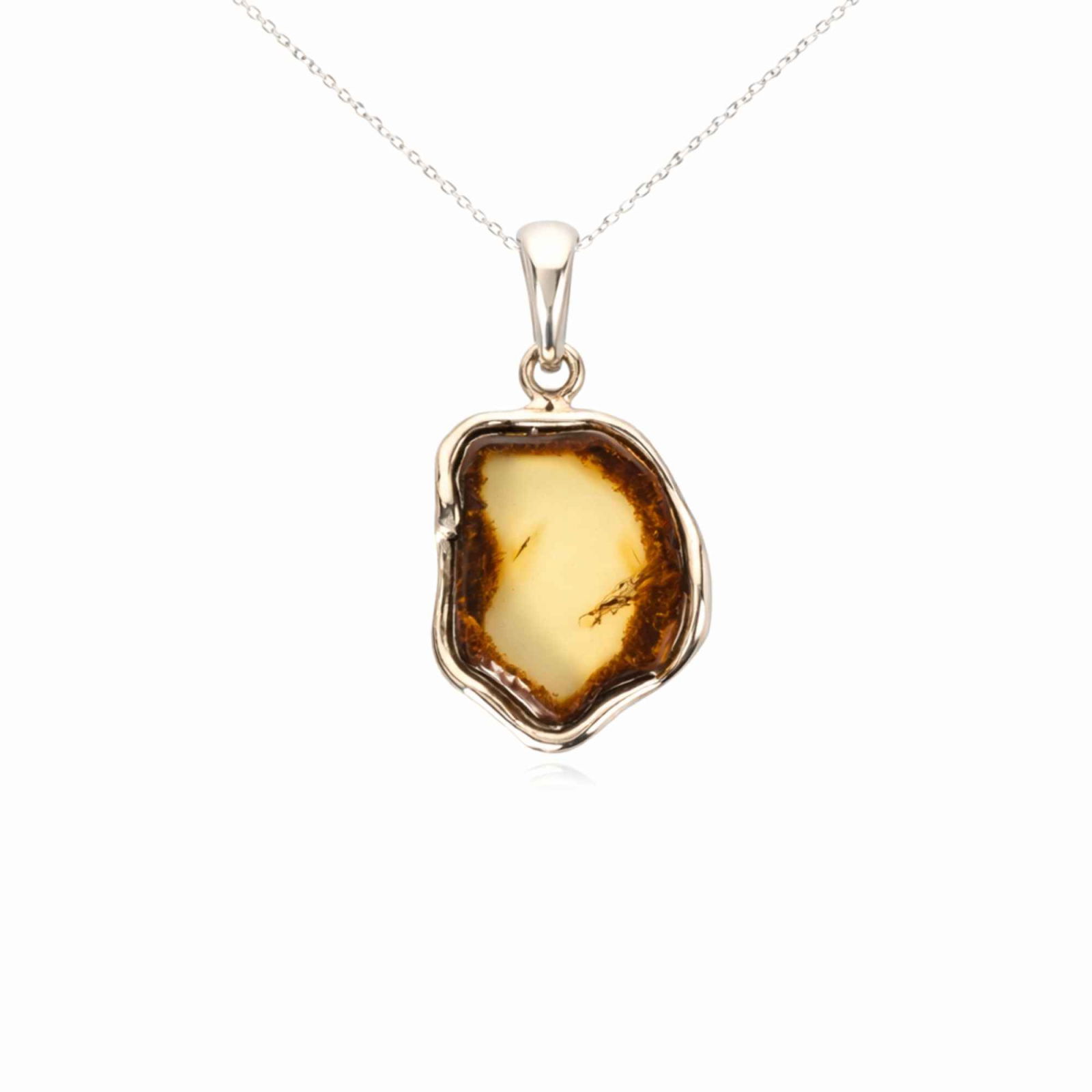 Acest colier cu pandantiv neuniform din chihlimbar natural celebrează frumusețea autentică, organică – exact așa cum este și energia ta.