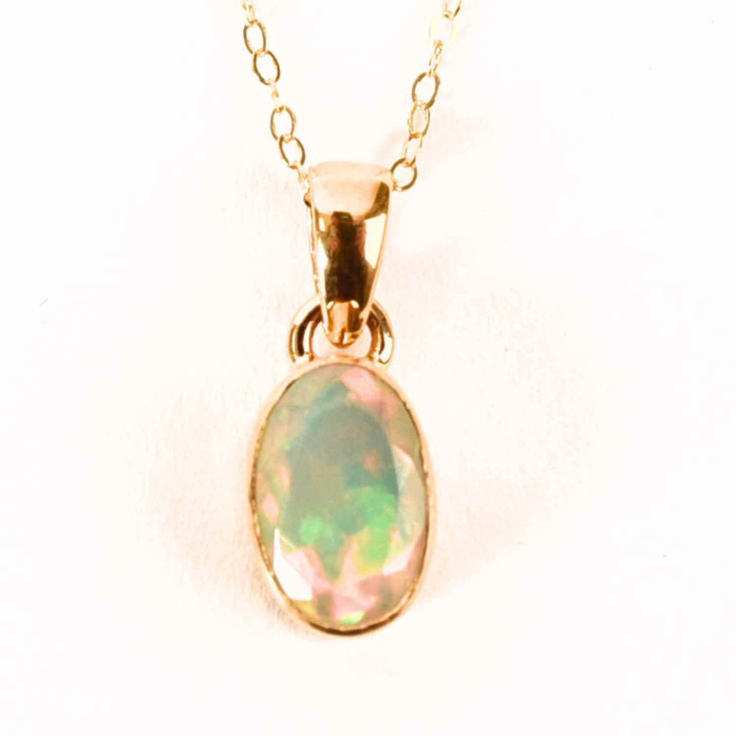 Un colier ce pare sa adune lumina cerului intr-o piatra vie — Opalul Etiopian, fațetat manual pentru a reflecta nuanțe de albastru, verde și roz, aducând cu sine energie de transformare și inspirație divină.
