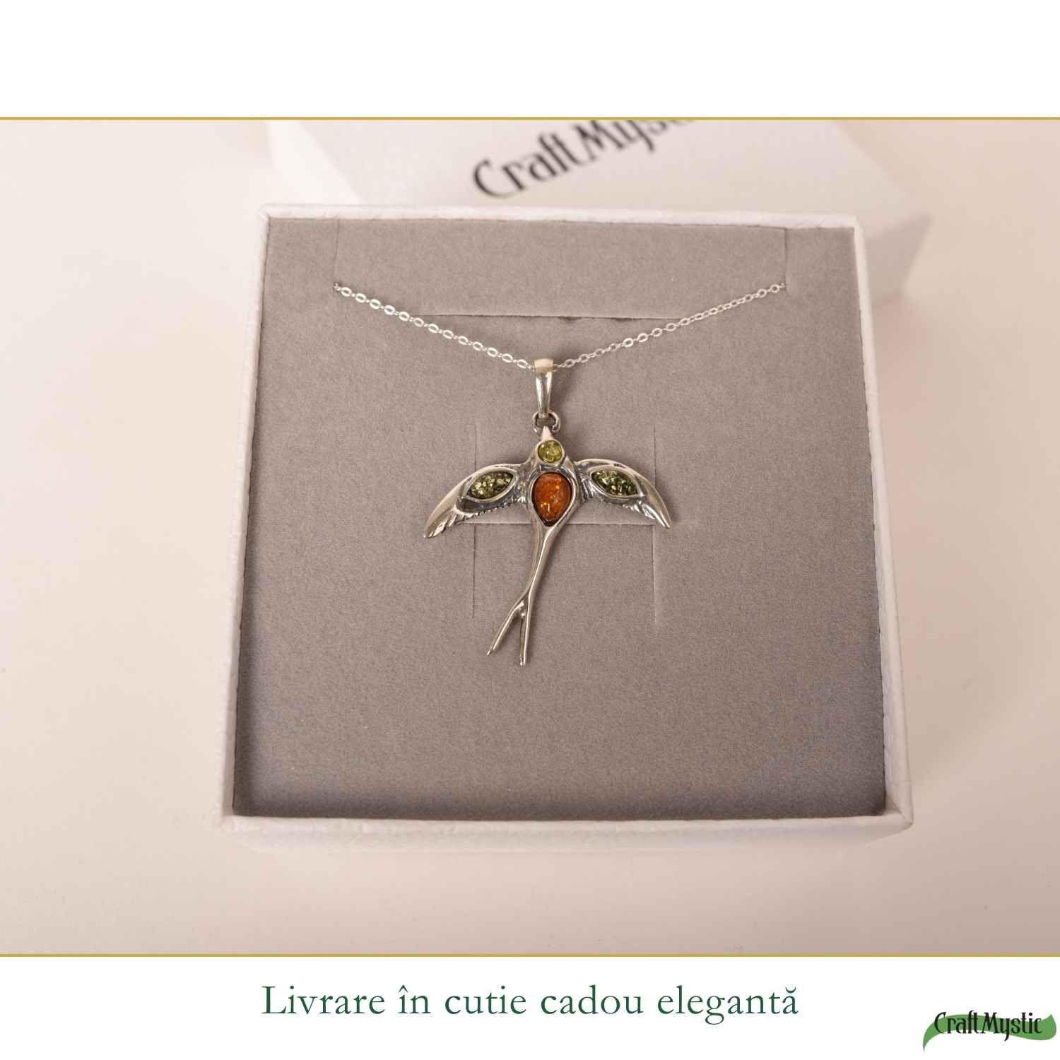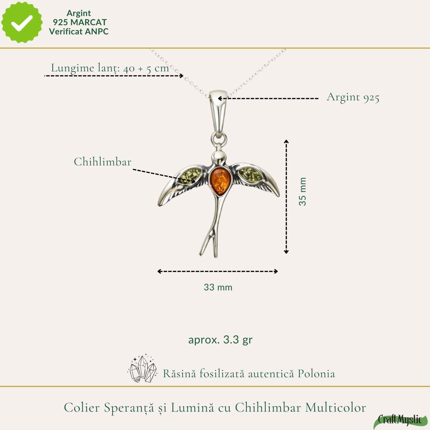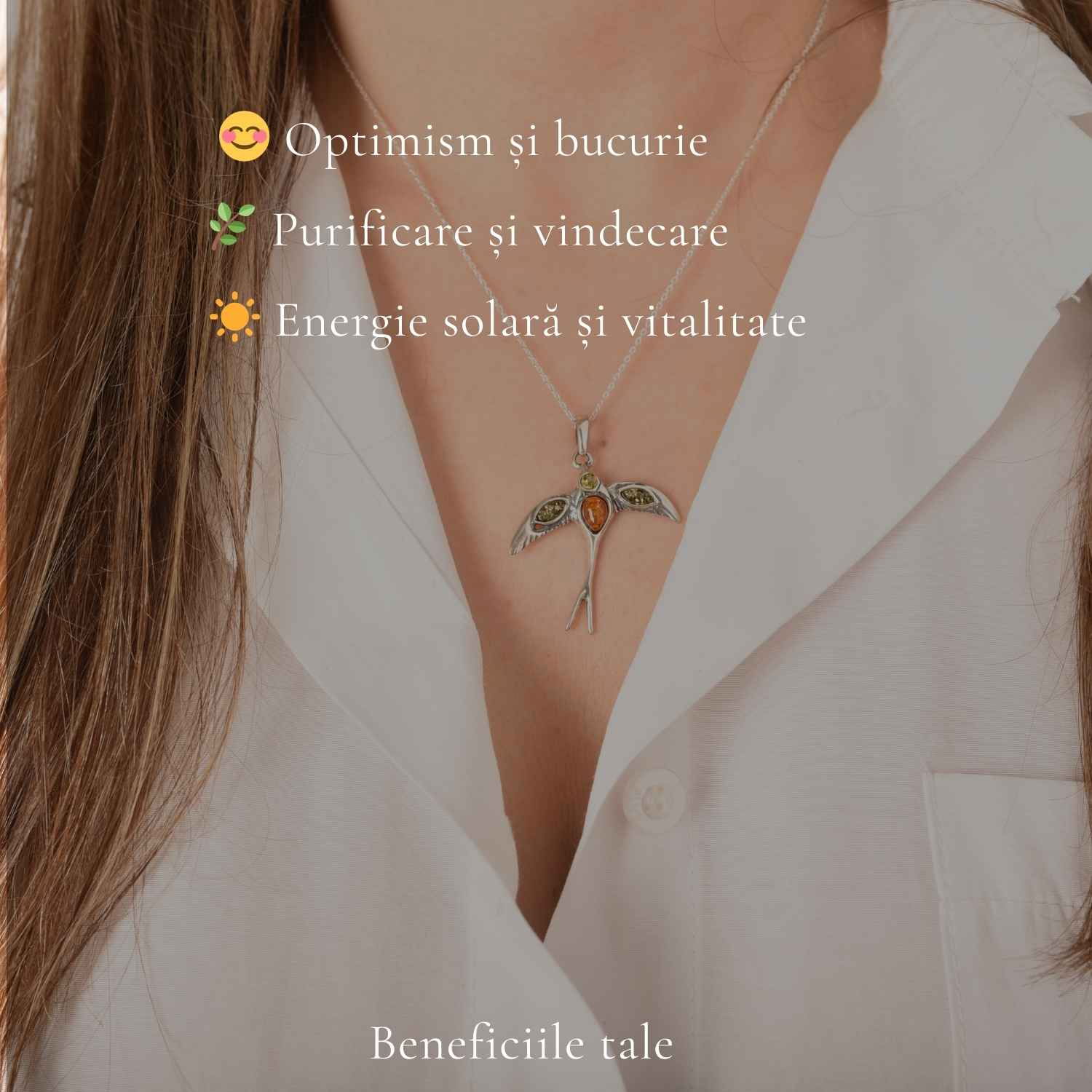 Cu chihlimbar natural în centru, acest colier aduce energia soarelui și promisiunea unui nou zbor în viața ta.
