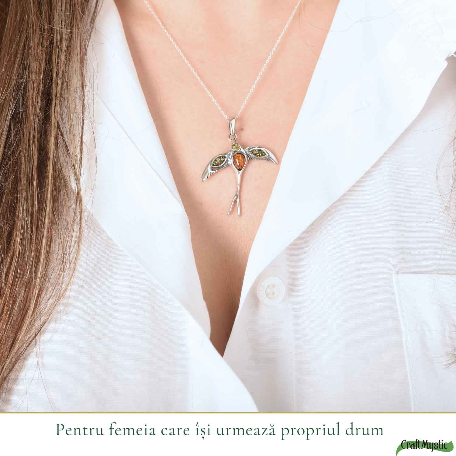 O porți la o rochie fluidă sau la o ținută casual, lăsând rândunica să fie simbolul zborului tău personal.