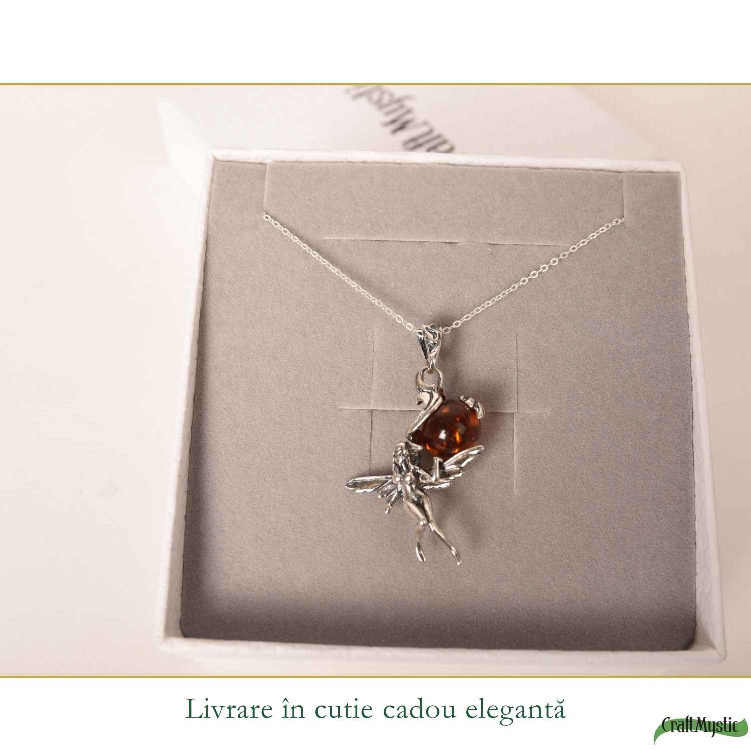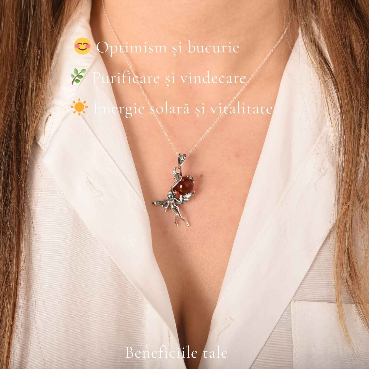 Acest colier cu zână și chihlimbar natural este un reminder al magiei tale interioare și al luminii pe care o porți în suflet.