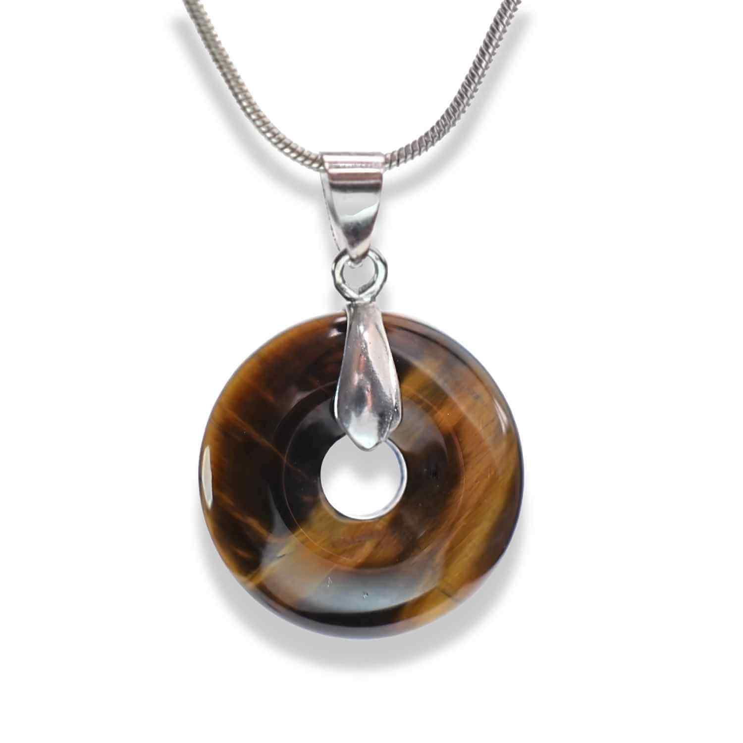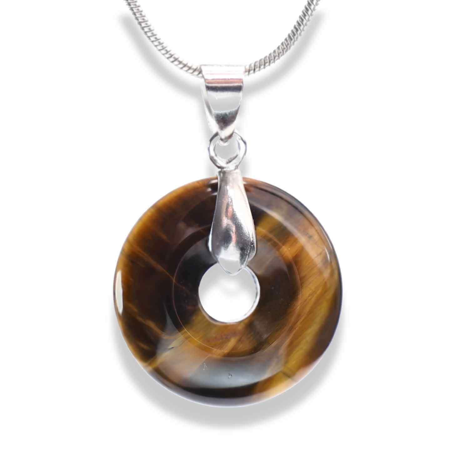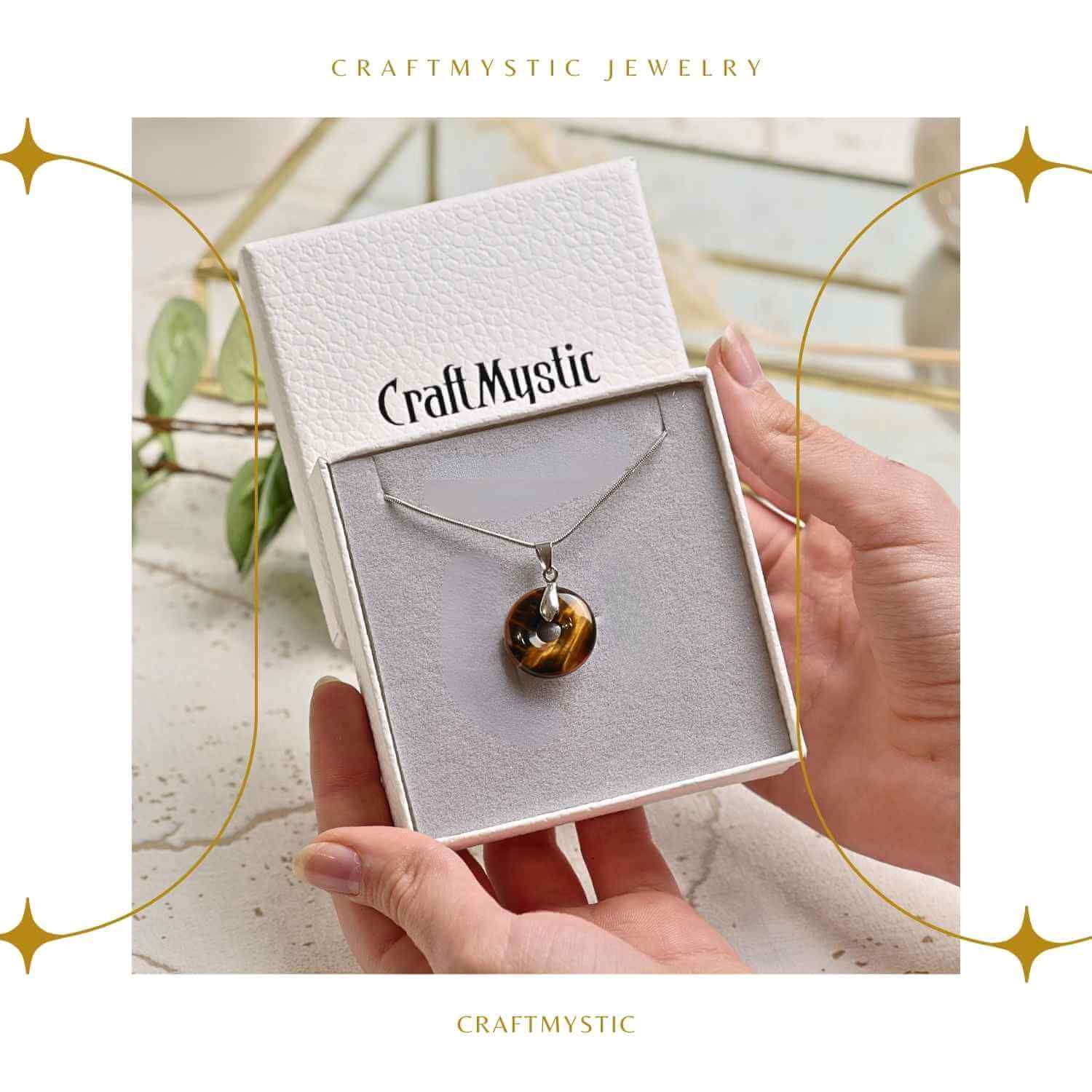 Acest colier cu lanț argintiu și pandantiv din Ochi de Tigru în formă Pi îmbină frumusețea naturală cu semnificația profundă. Pandantivul măsoară 20 mm, iar lanțul ajustabil de 50 cm asigură confort și stil. Este realizat manual, fiecare piatră fiind unică, cu variații naturale de textură și culoare.