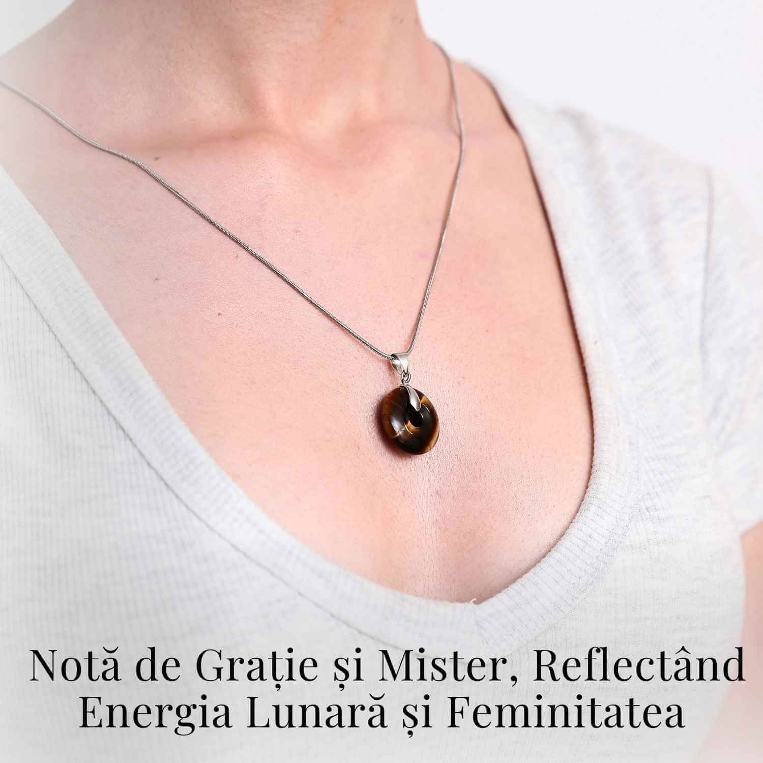 - Pandantiv: Piatra naturală Ochi de Tigru, formă Pi (20 mm).