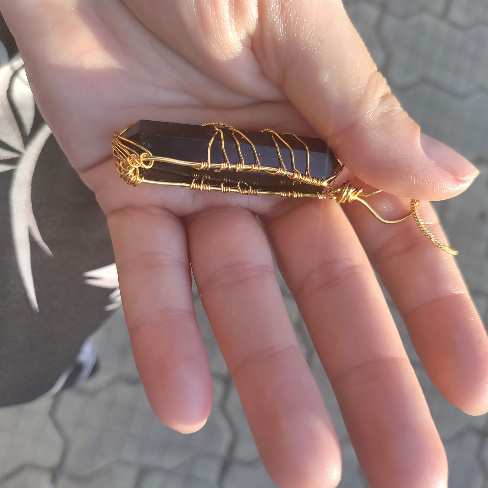 Material: Obsidian negru si lant stilat auriu.