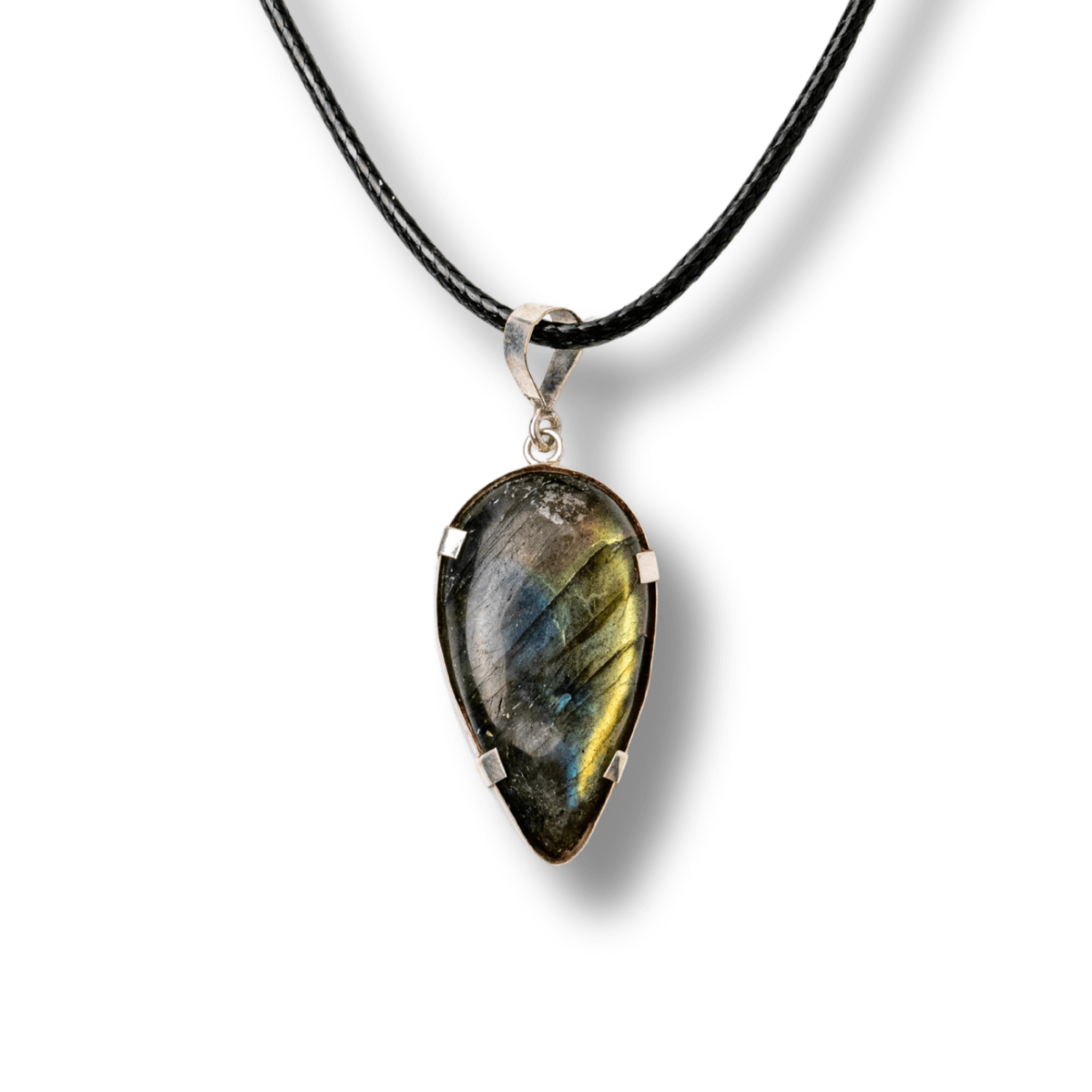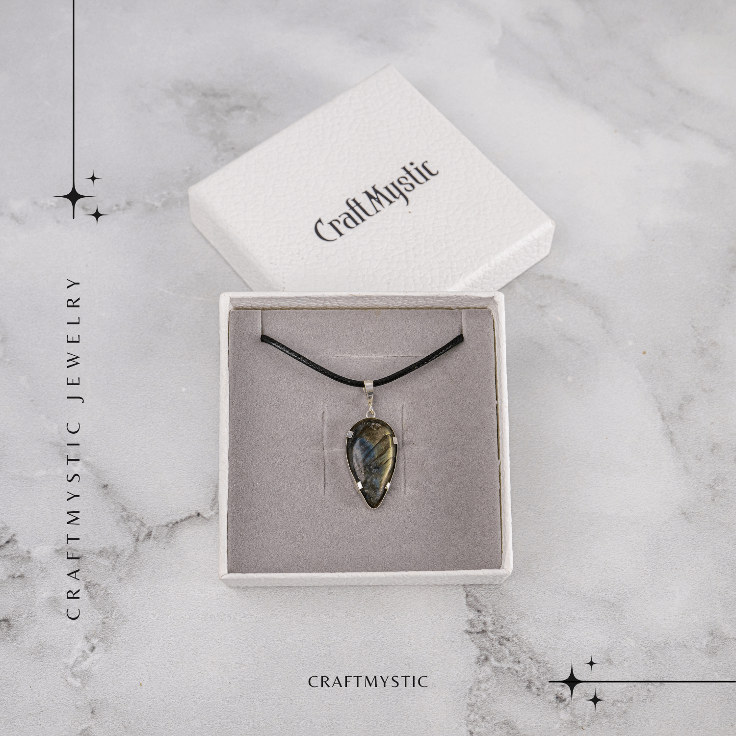 Colier cu Labradorit Natural în Forma de Picatura – Protectie, Intuitie si Stralucire Irizata
